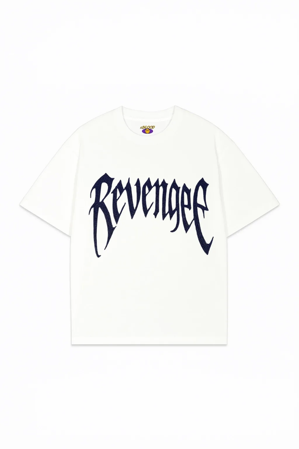 Beyaz Revenge Beyaz Taş Baskılı Oversize Unisex T-shirt