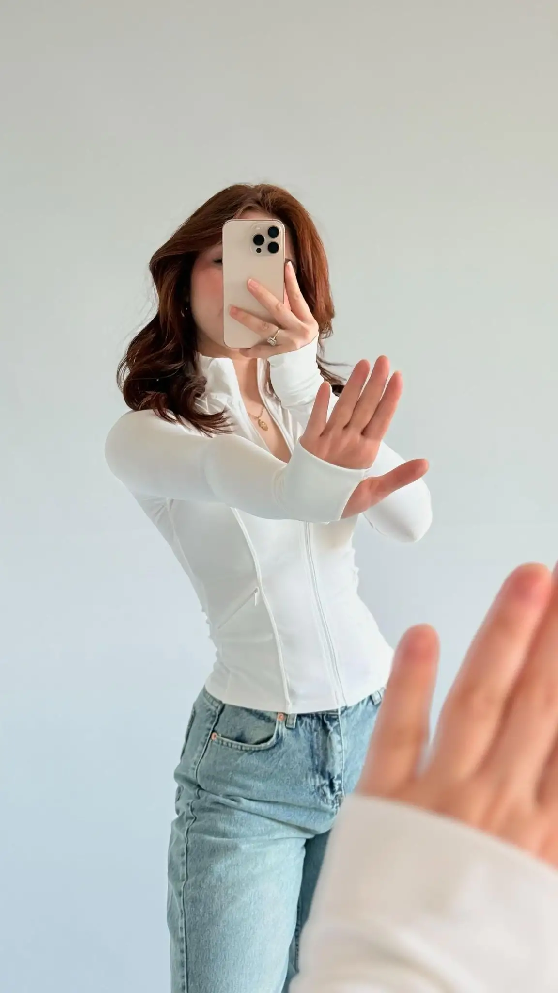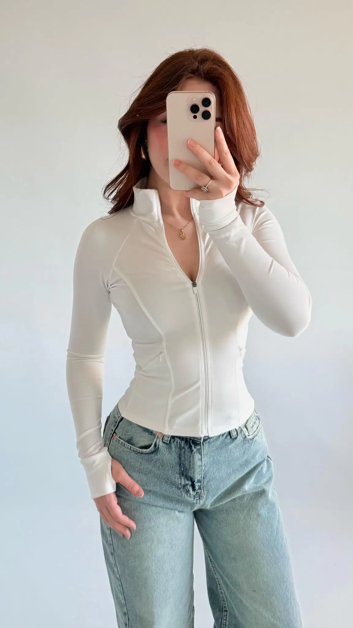 Beyaz Rover Fermuarlı Bluz