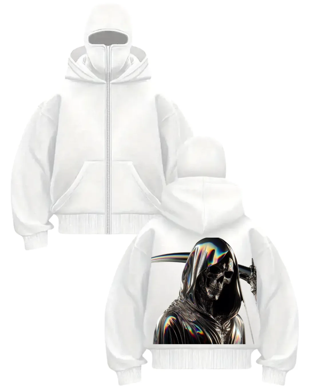 Beyaz Ölüm Meleği Baskılı Kar Maskeli Unisex Sweatshirt Hırka