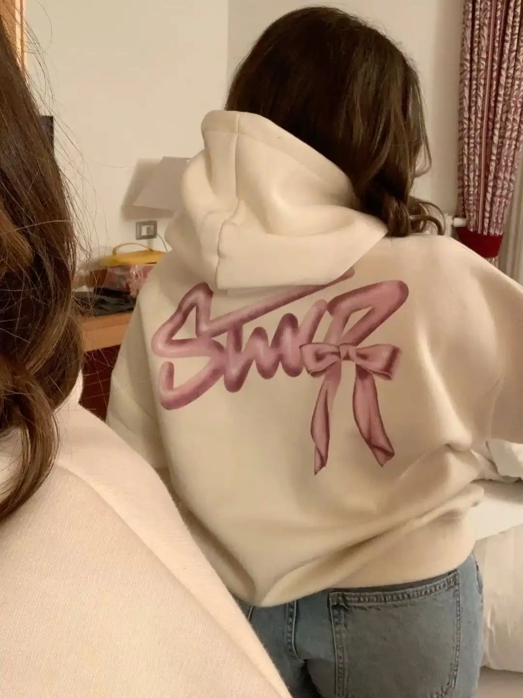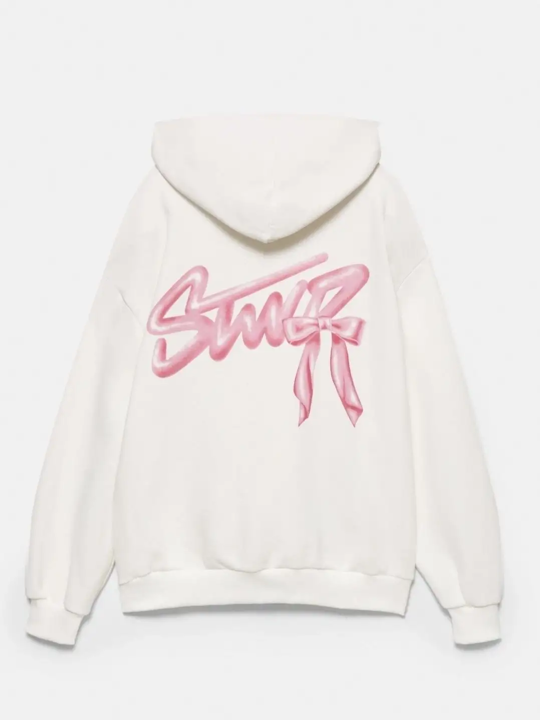 Beyaz Swd Kurdele Baskılı Oversize Kapüşonlu Sweat