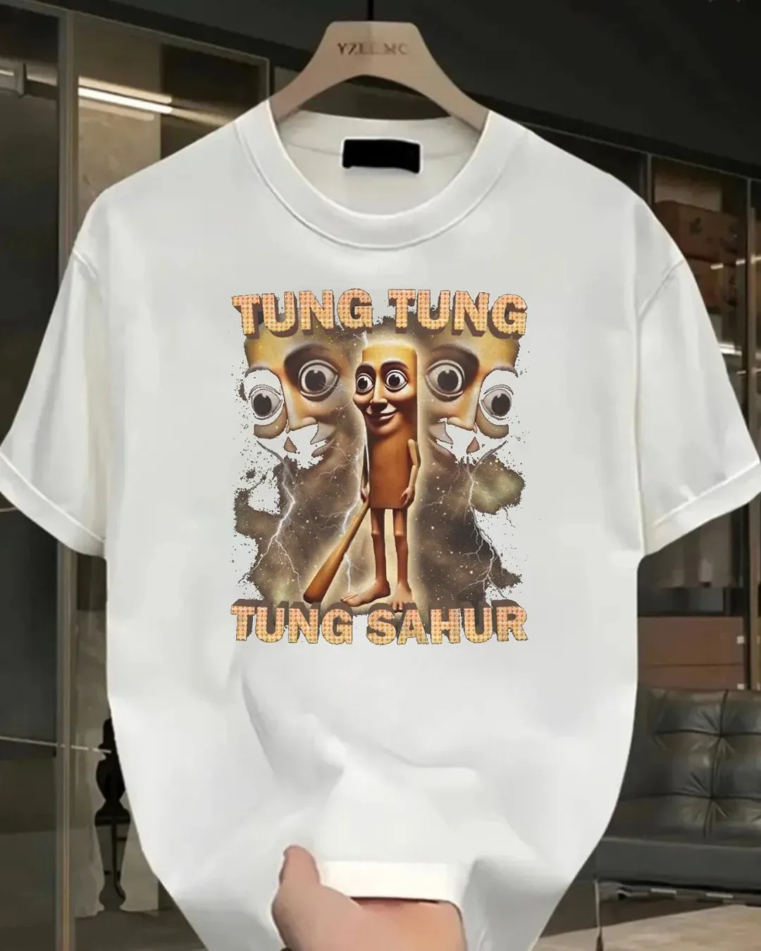 Beyaz Tung Tung Tung Sahur Baskılı Unisex Oversize T-Shirt
