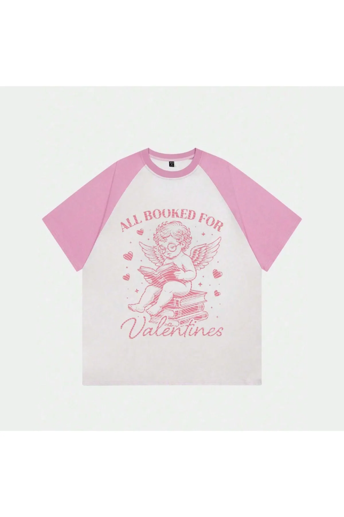 Beyaz Unisex Pembe Reglan Valentine's T-Shirt
