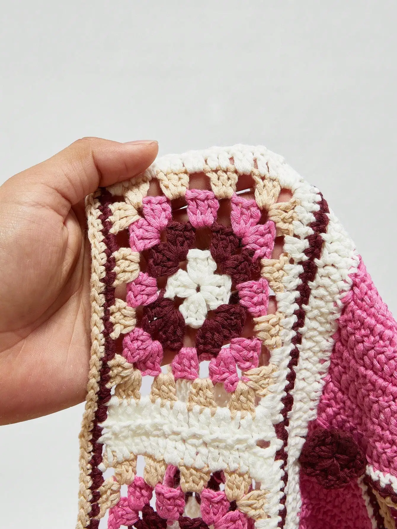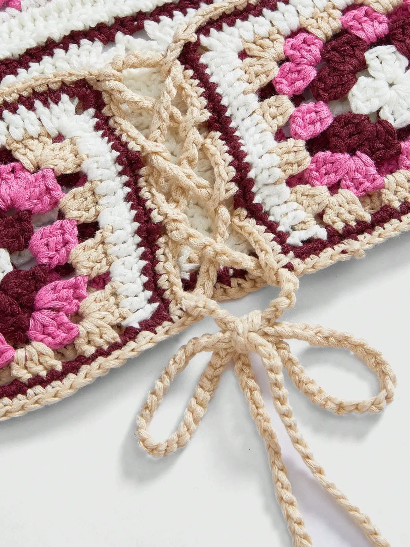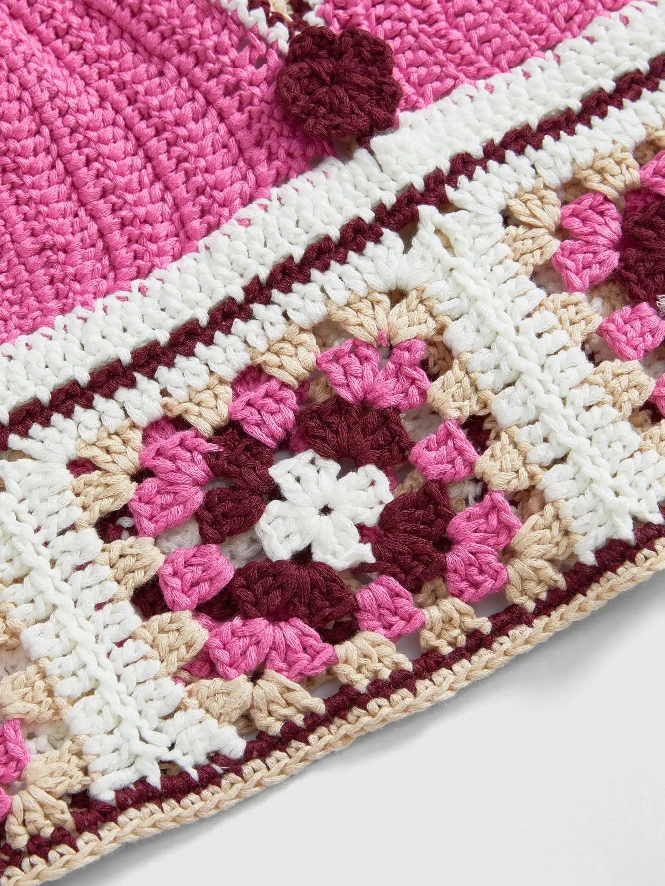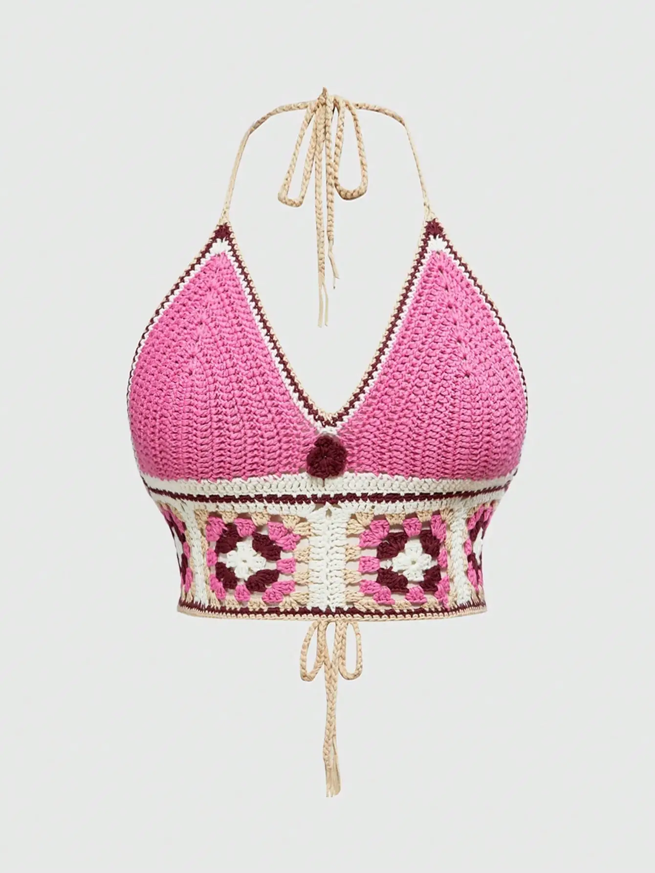 Boho Pink El Örgü Detaylı Üçgen Crop Top