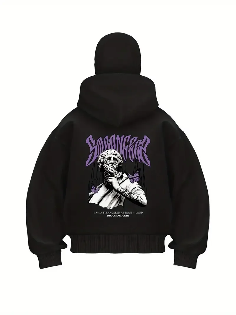 Siyah Baskılı Oversize Unisex Kapüşonlu Sweat