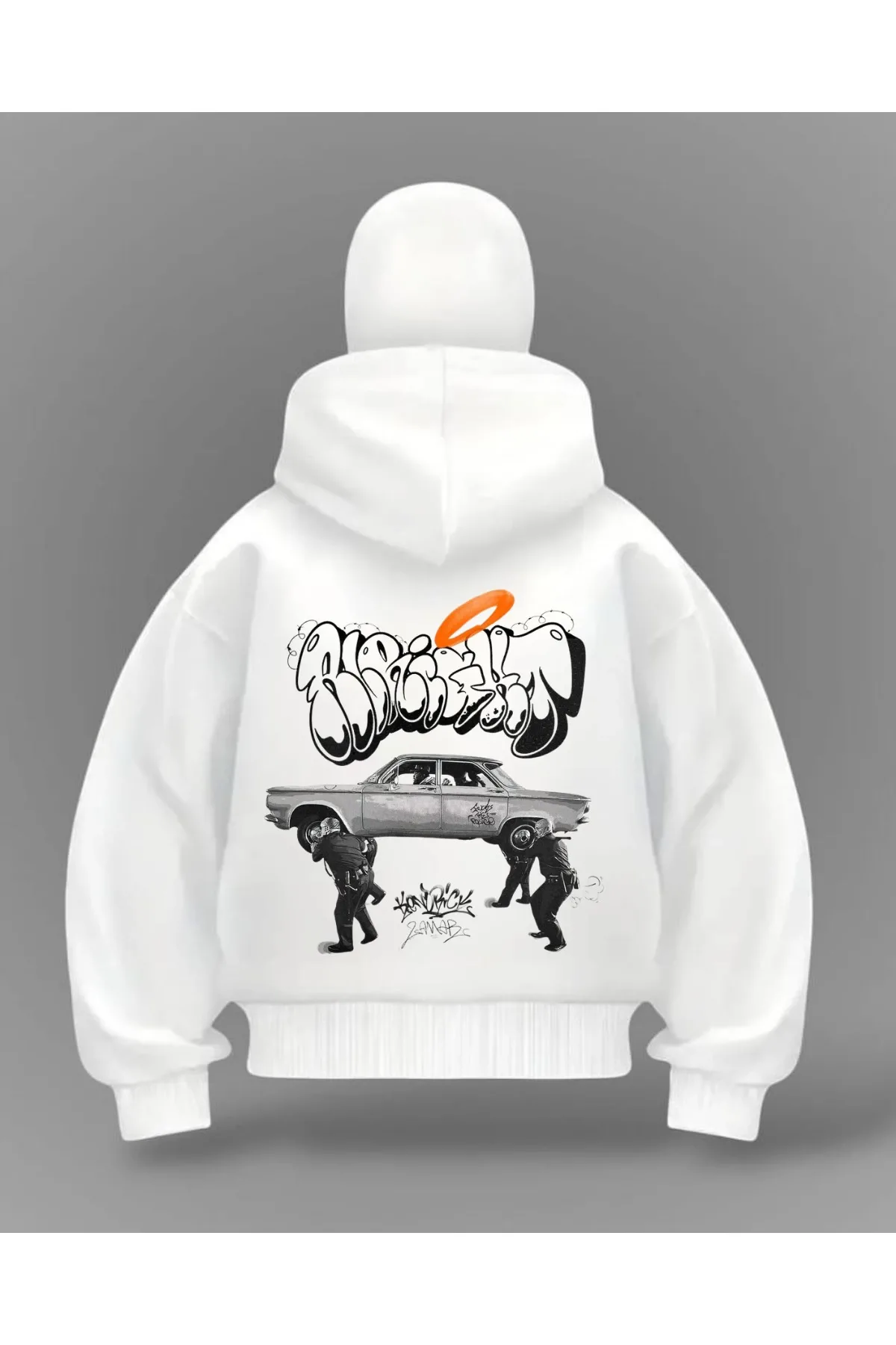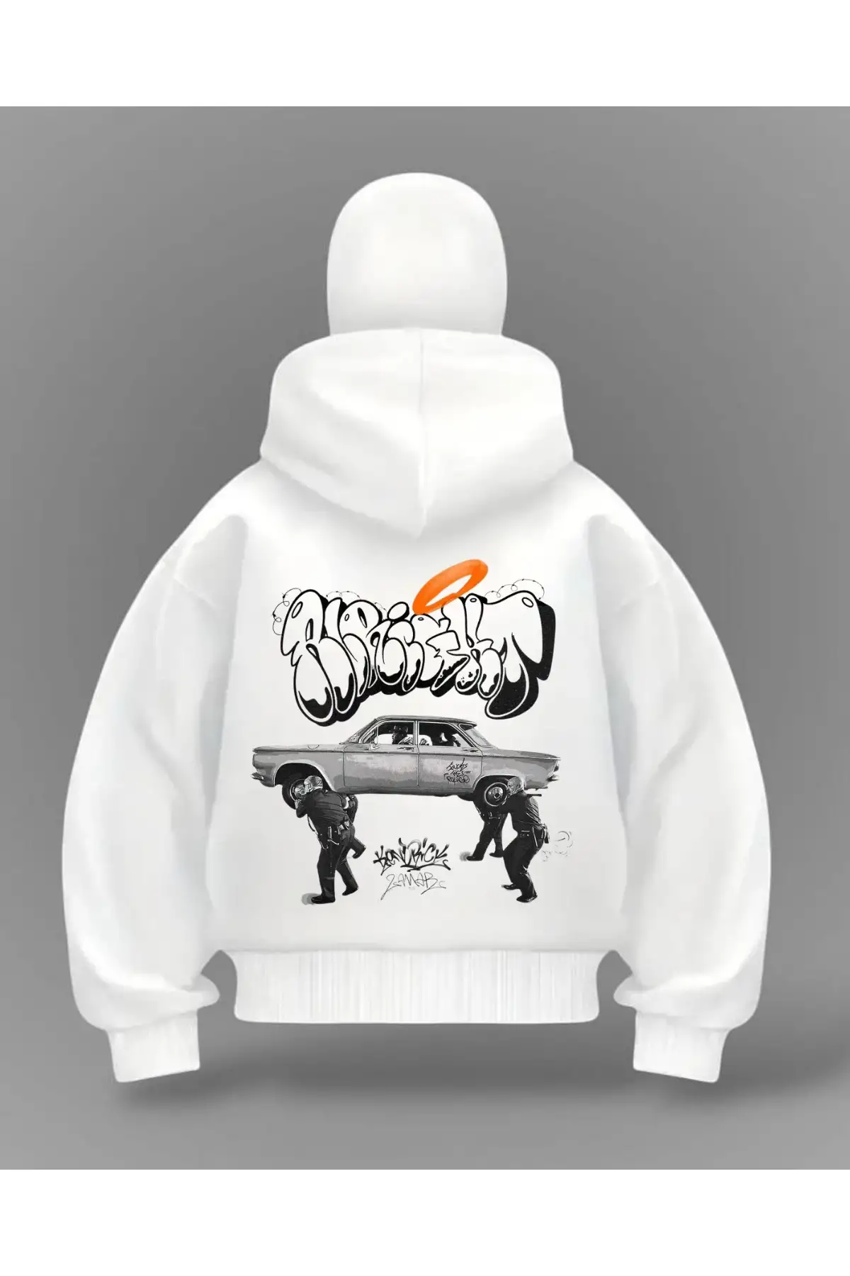 Car Graffiti Detail Full Mask Oversize Unisex Hırka