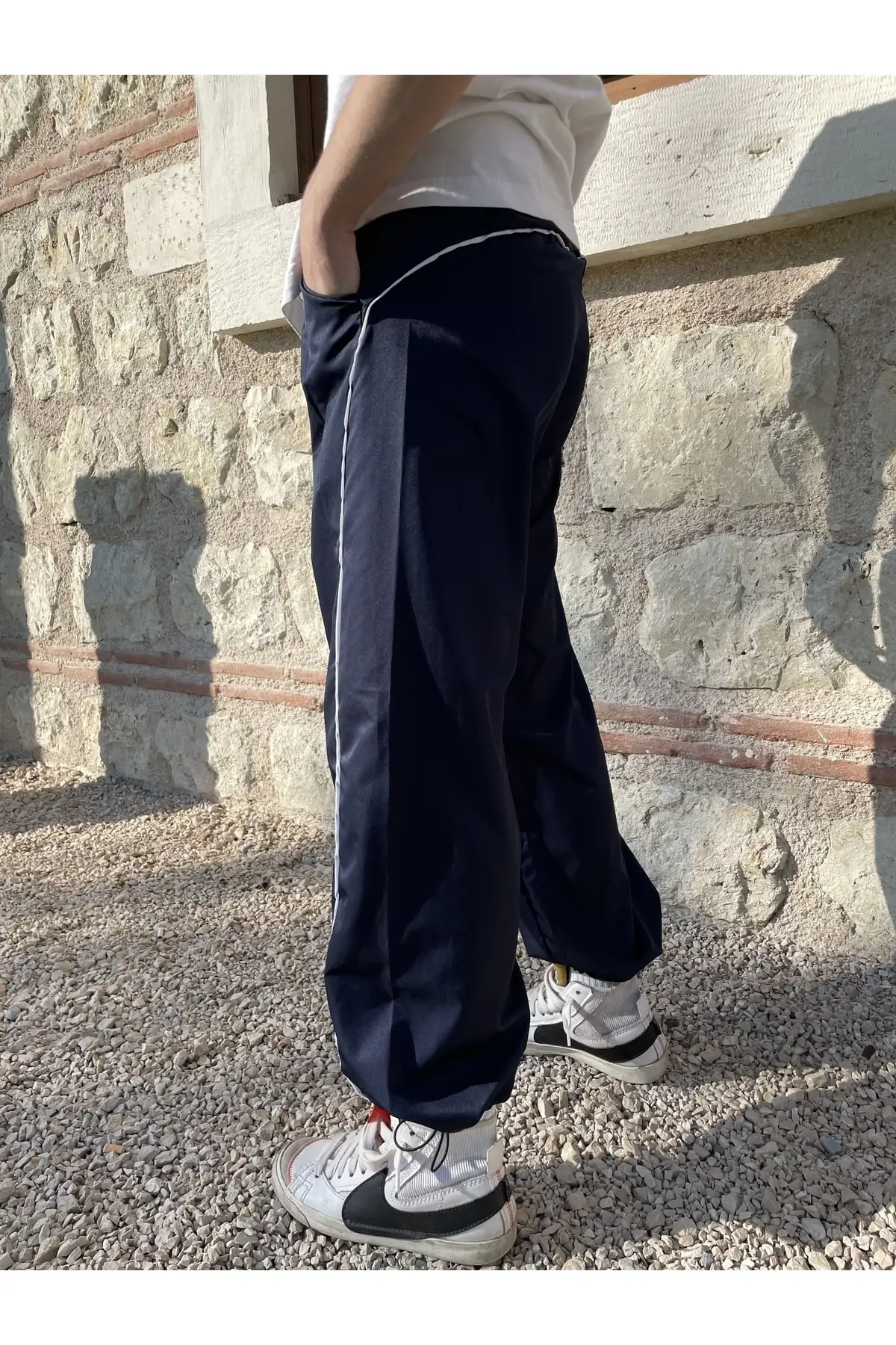 Çizgi Detay Lacivert Paraşüt Eşofman