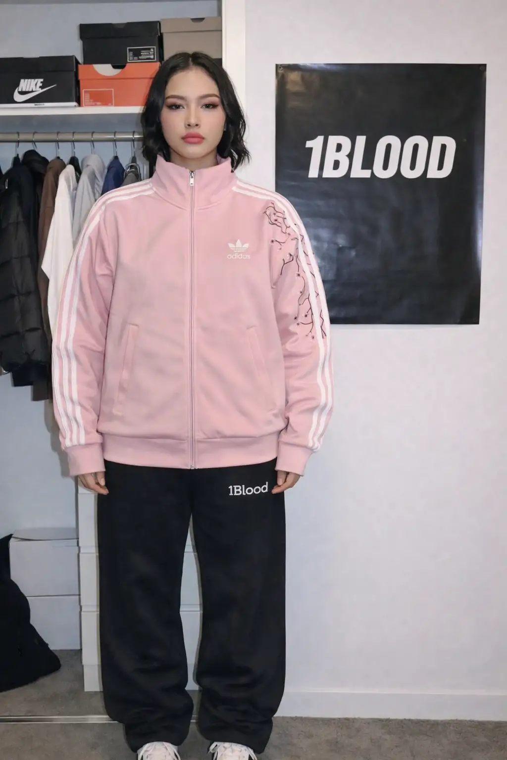 Çizgili Flower Pembe Oversize Unisex Ceket