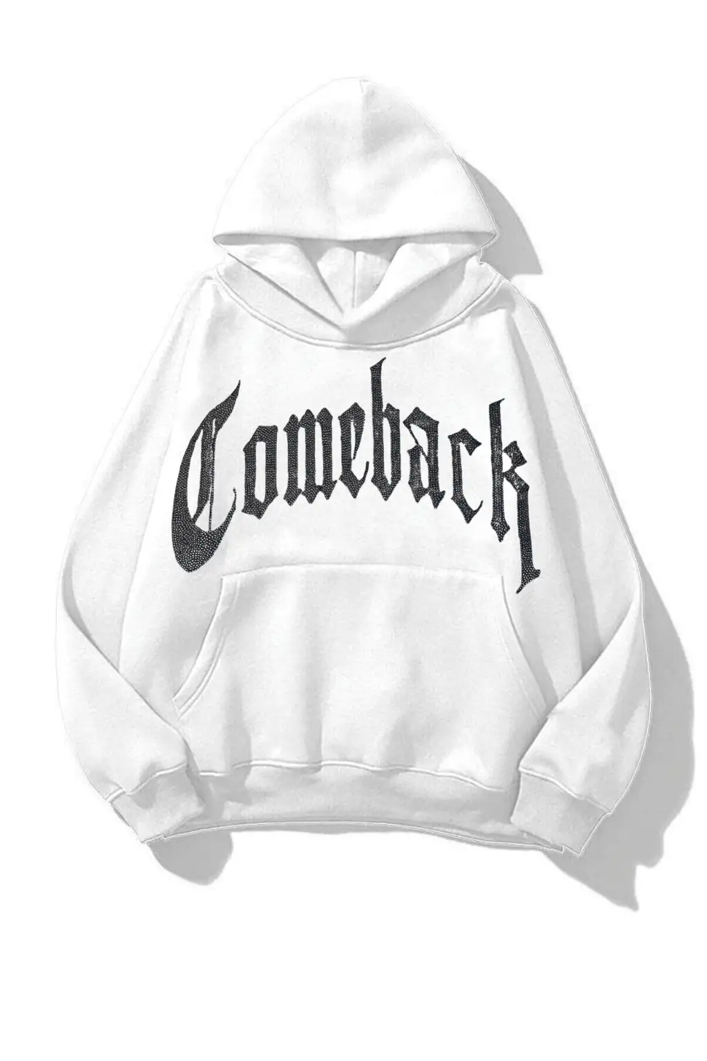 ComeBack Beyaz Taş Baskılı Oversize Unisex Kapüşonlu Sweat