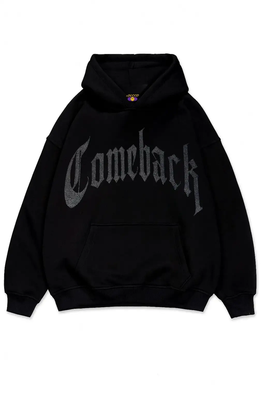 ComeBack Beyaz Taş Baskılı Oversize Unisex Kapüşonlu Sweatshirt