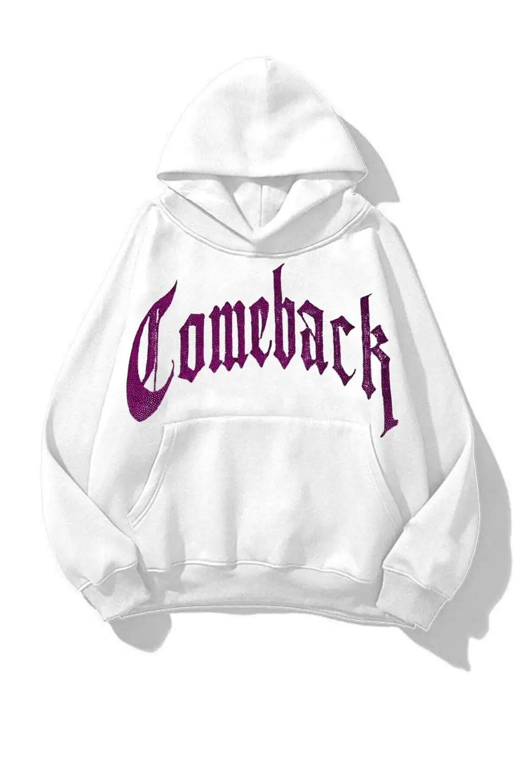 ComeBack Pembe Taş Baskılı Oversize Unisex Kapüşonlu Sweat