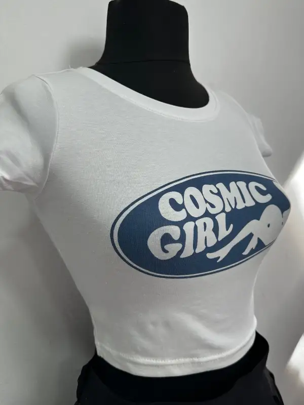 2000’lerin yıldız tozlu estetiğinden ilham alan bu beyaz crop, uzay çağı modasını sokak stiline taşıyor. Oversize fontlu retro yazısı ve grafik baskısıyla tam bir Y2K ruhu!
