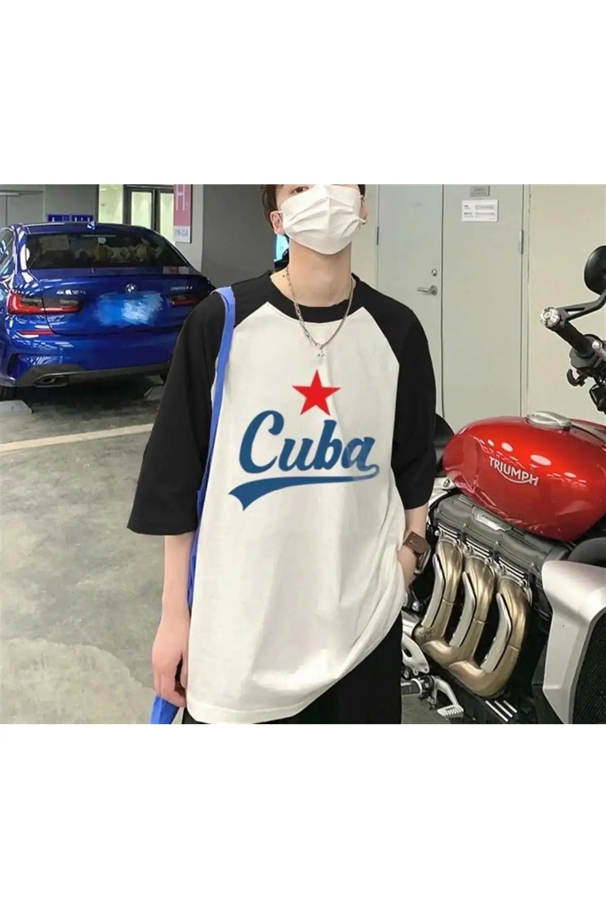 Cuba Model Siyah Reglan Kol Kısa Kollu Tişört