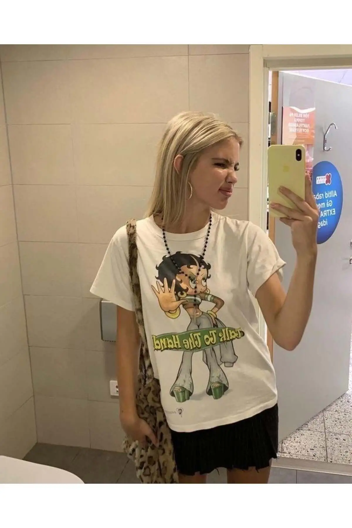 Cute Betty Boop Baskılı Beyaz T-shirt