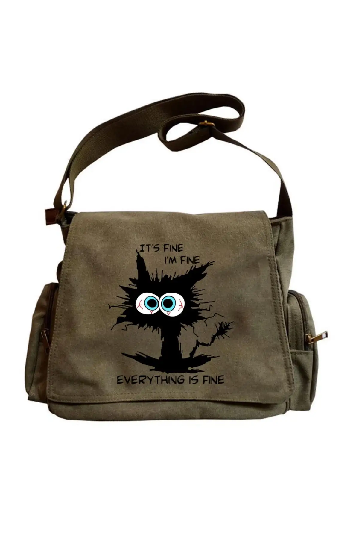 Cute Cat Seriouse Baskılı Unisex Postacı Çantası