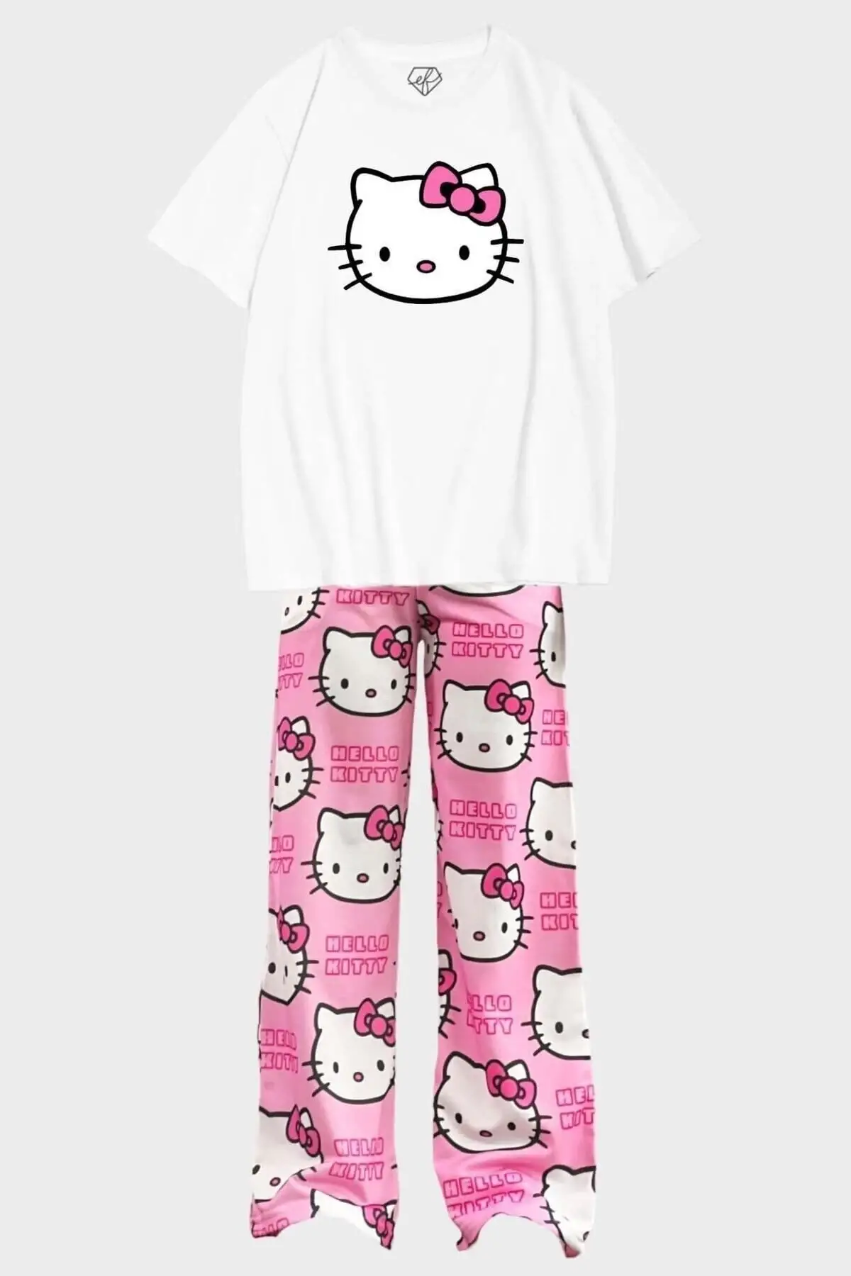 Hello Kitty pijama Unisex Alt-Üst T-shirt Eşofman Takım