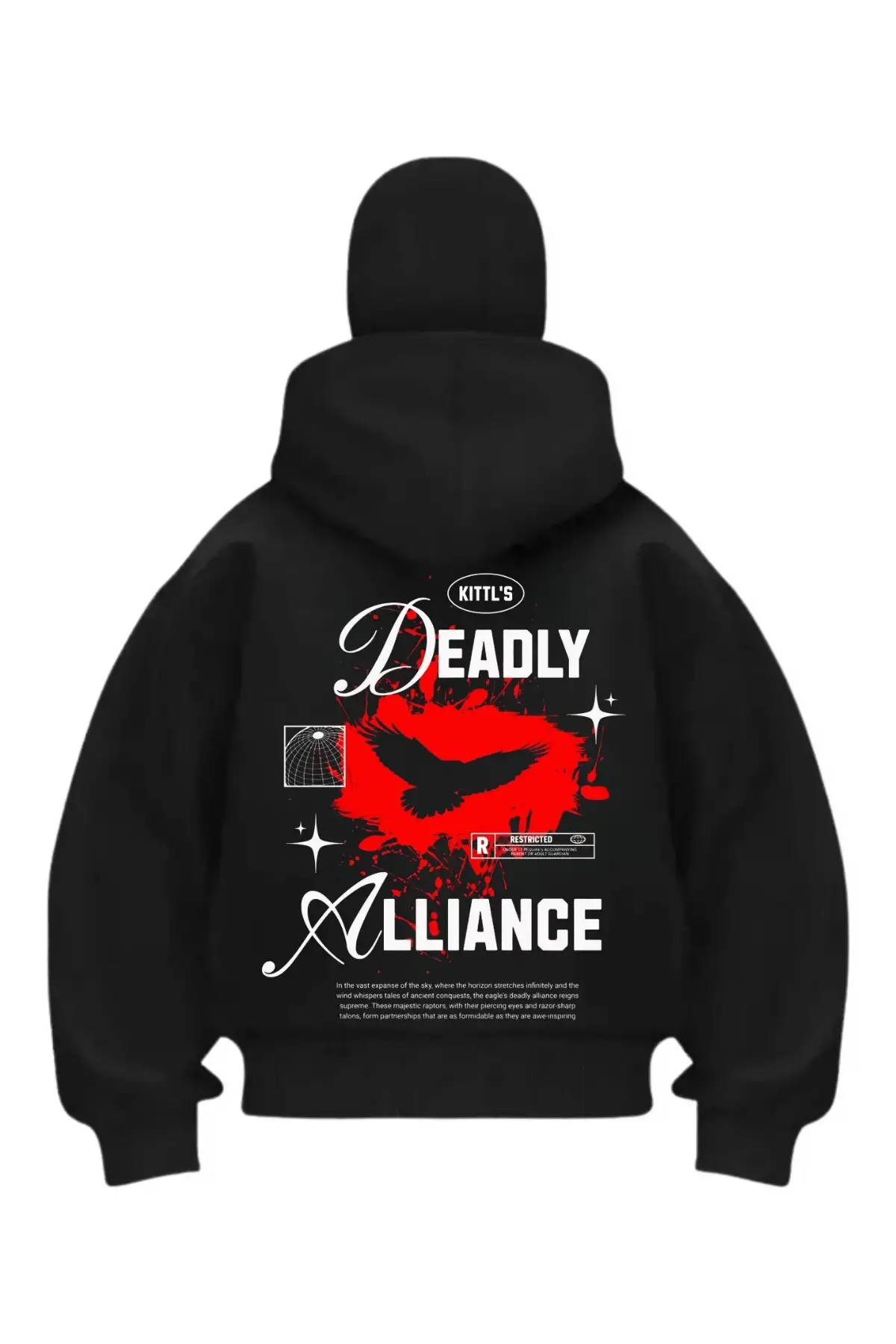 Deadly Allience Baskılı Siyah Samuray Kar Maske Sweatshirt Hırka