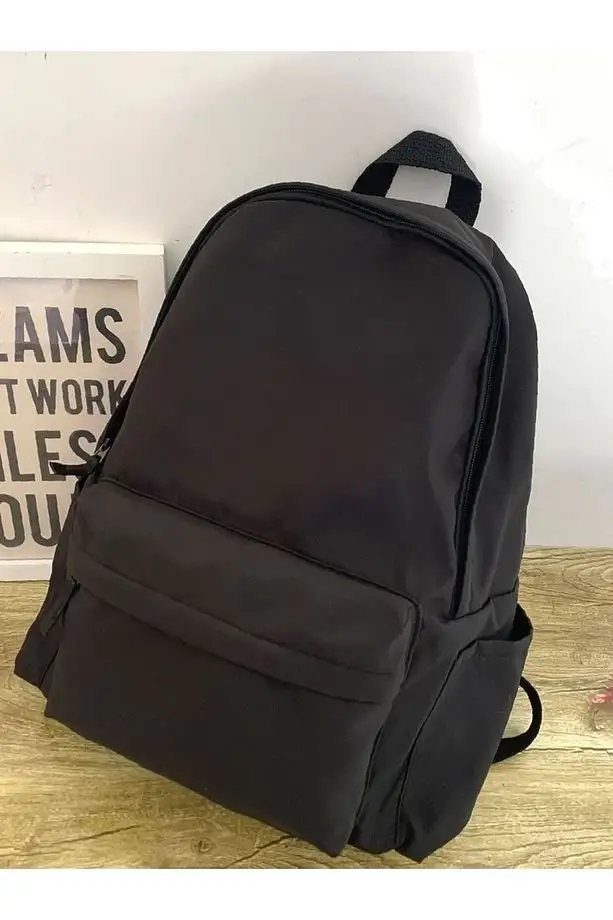 Düz Siyah Renk Unisex Okul Sırt Çantası