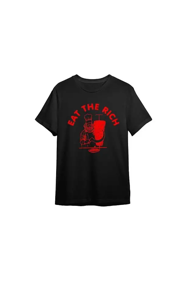 EAT THE RICH Siyah Baskılı Unisex Oversize T-shirt