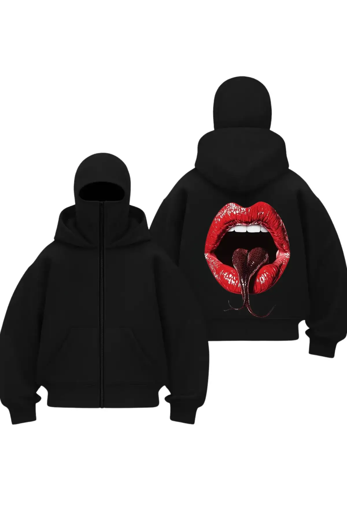 Epss Snake Baskılı Siyah Samuray Kar Maske Sweatshirt Hırka