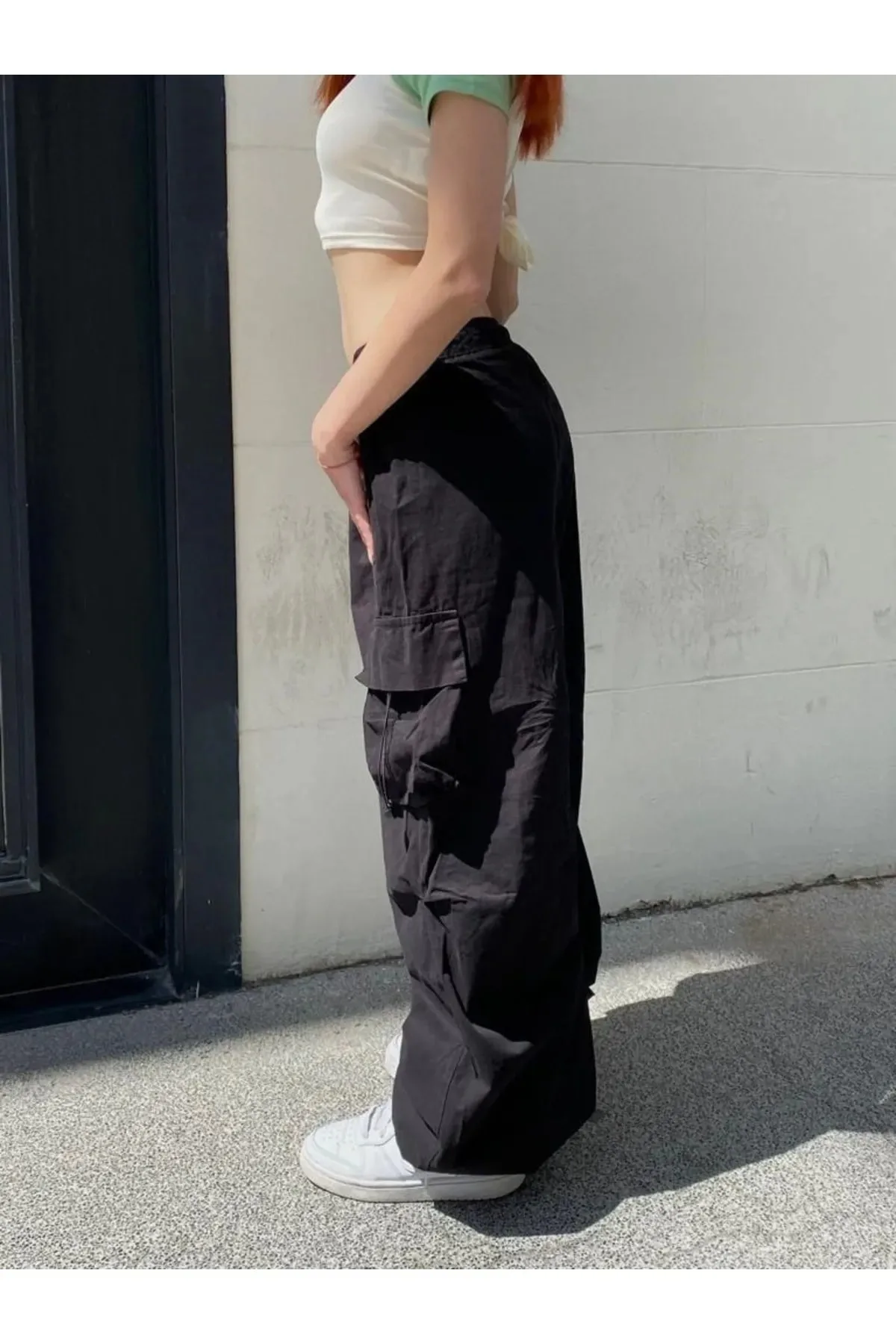 Extra Baggy Kargo Cepli Tactical Paraşüt Kumaş Bol Paça Siyah Renk Pantolon