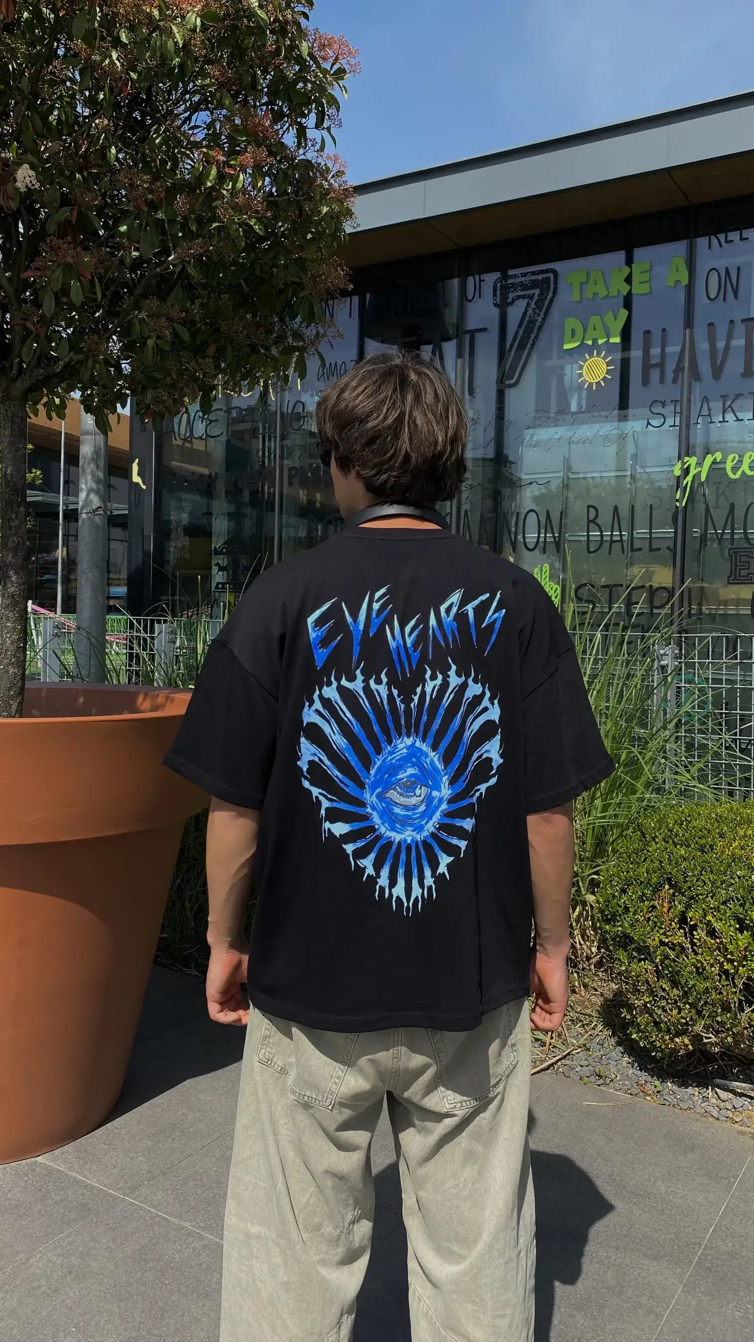 Comeback Mavi Taş Baskılı Oversize Unisex T-shirt