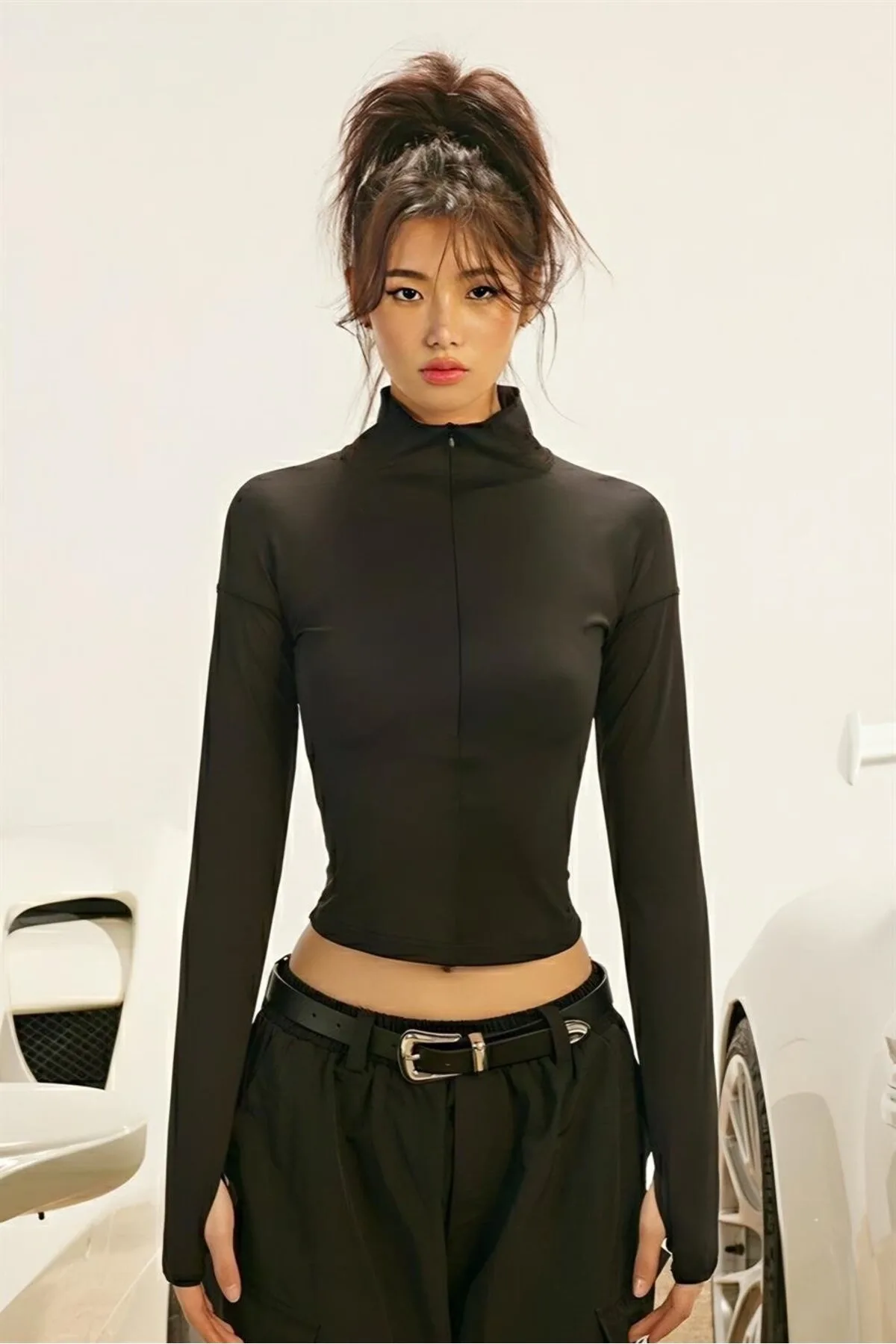 FERMUARLI UZUNKOL SİYAH SANDY BLUZ