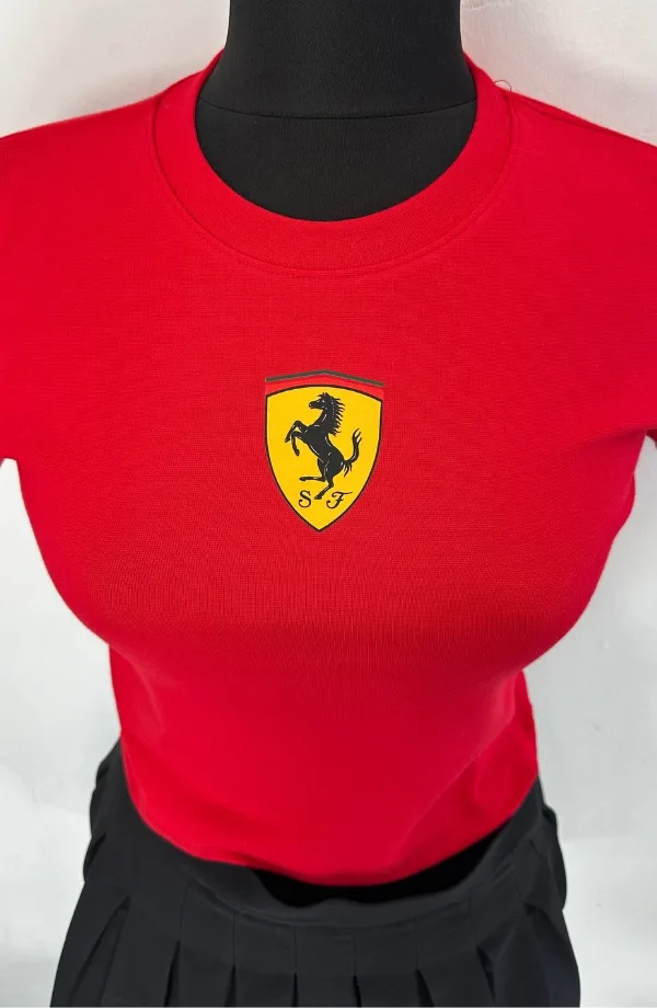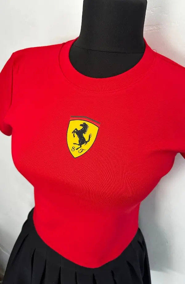 ?️ Ferrari Logo Kırmızı Crop – Hız Tutkunlarına Özel!
