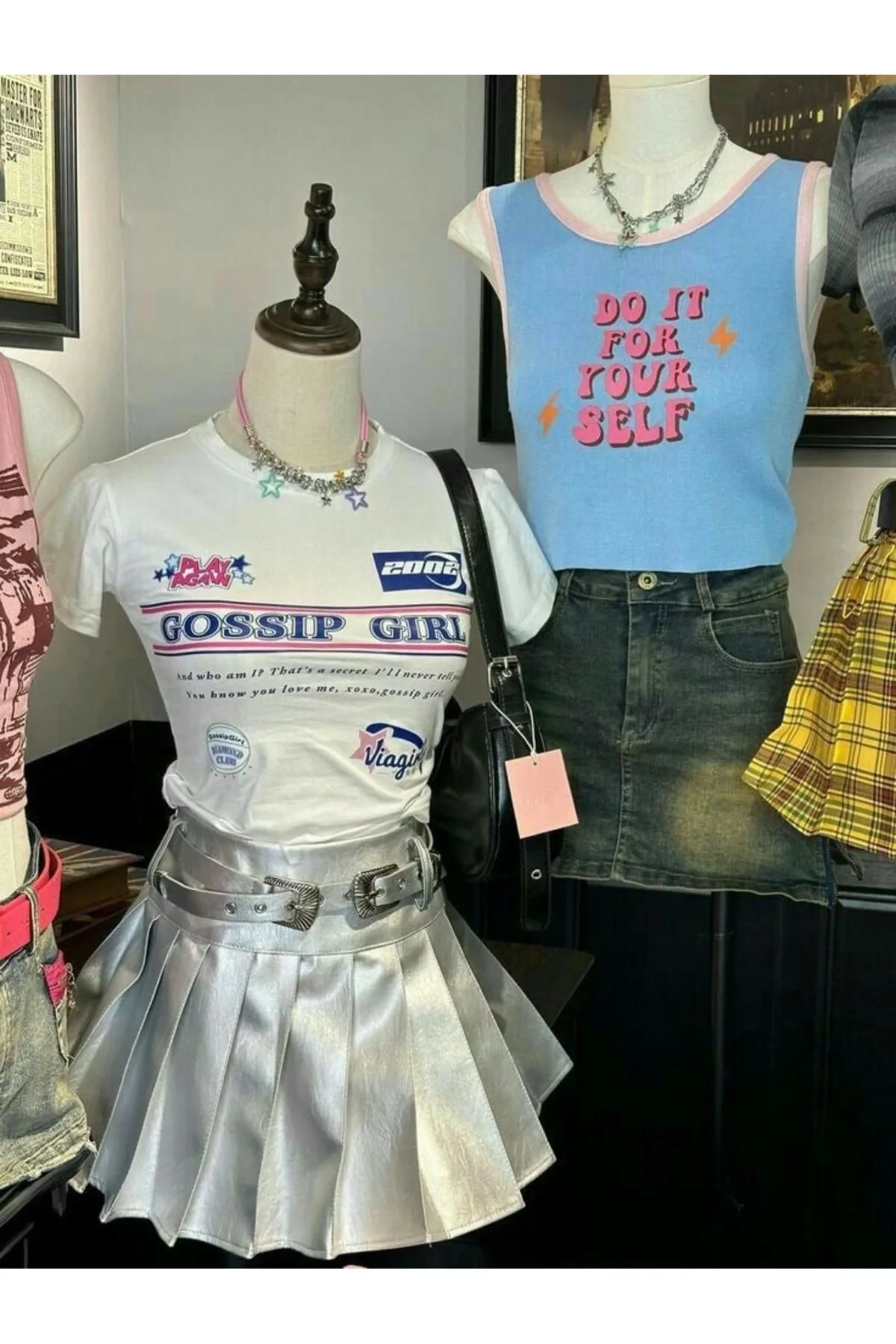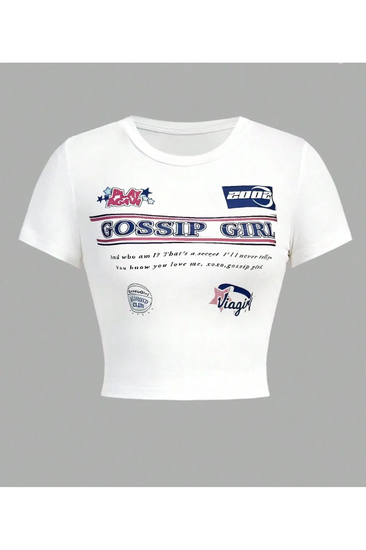 Gossip Girl Baskılı Beyaz Body Crop Bluz