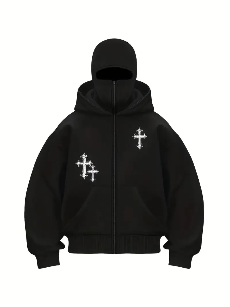 Gothic Cross Baskılı Kar Maskeli Ninja Unisex Sweatshirt Hırka