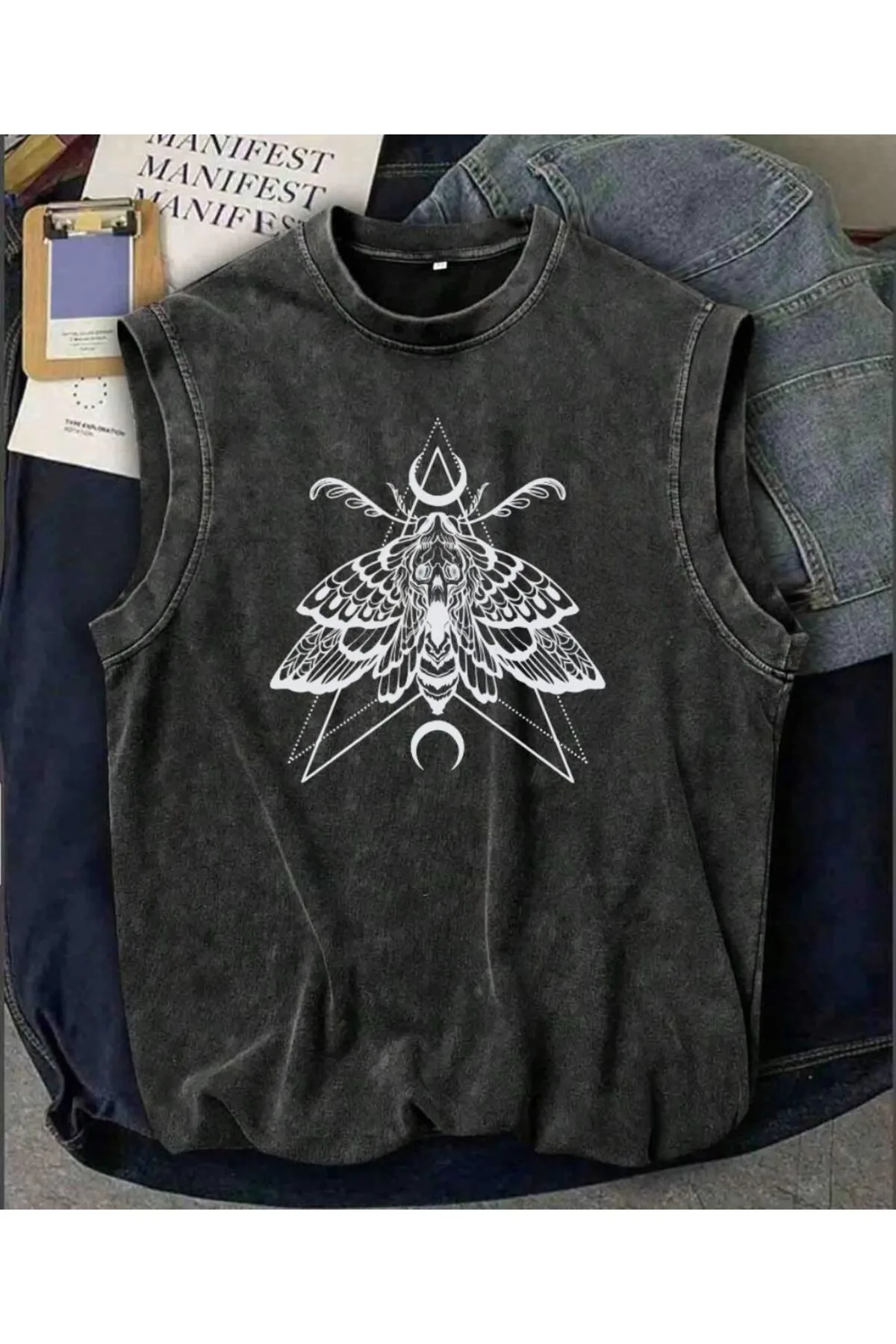 Gothic Figür Atlet Bisiklet Yaka Yıkamalı Vintage Unisex Oversize T-Shirt