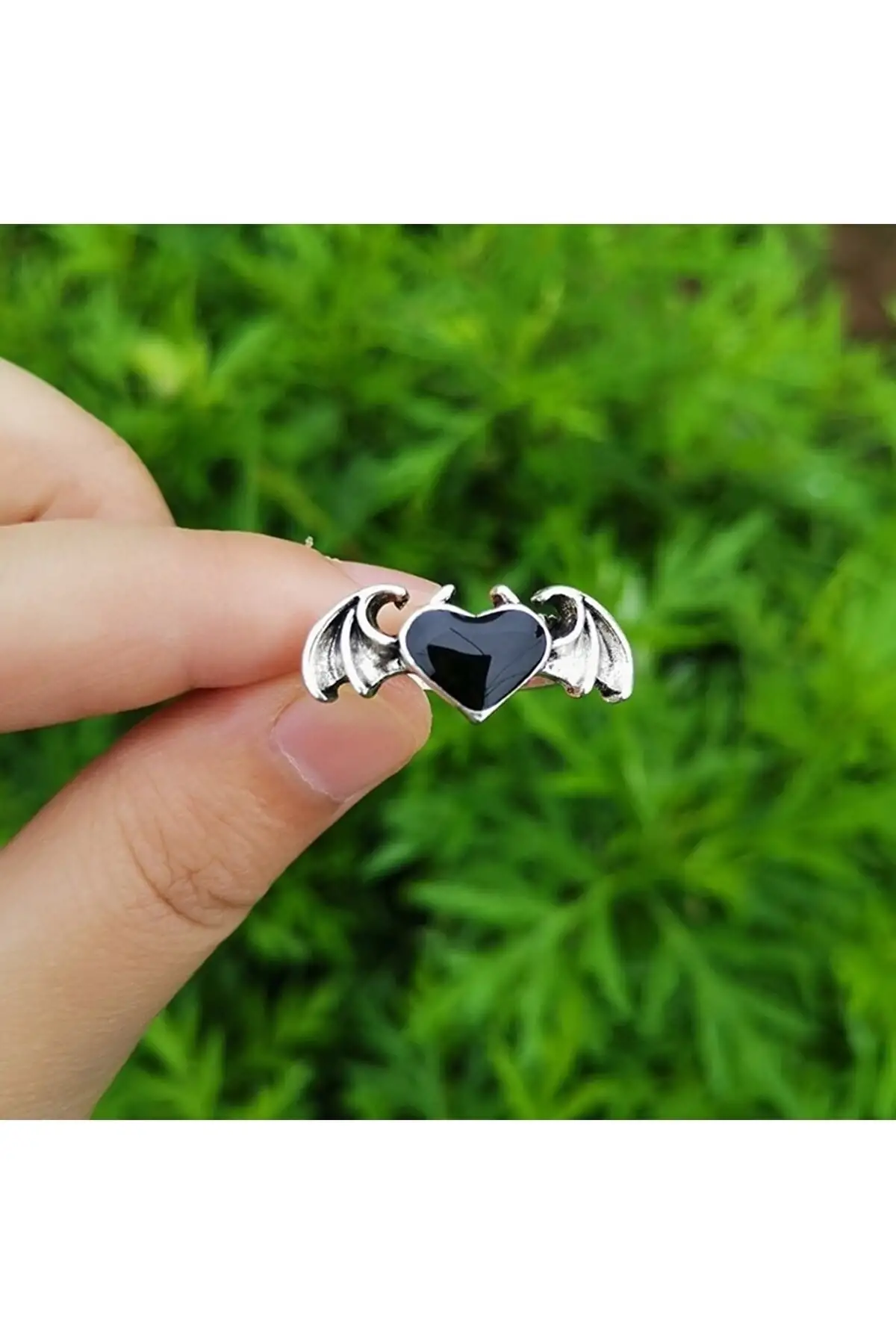 Gothic Kalp Heart Decor Çift Kanat Unisex Ayarlanabilir Yüzük