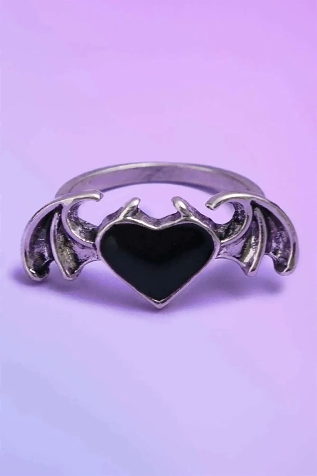 Gothic Kalp Heart Decor Çift Kanat Unisex Ayarlanabilir Yüzük ; Ayarlanabilir yapısından dolayı herkes için uygundur. ; Tarzınıza fark katacak gümüş kaplama metal yüzüğün uzun ömürlü kullanımı için sıvı ile temasından kaçınınız. ;