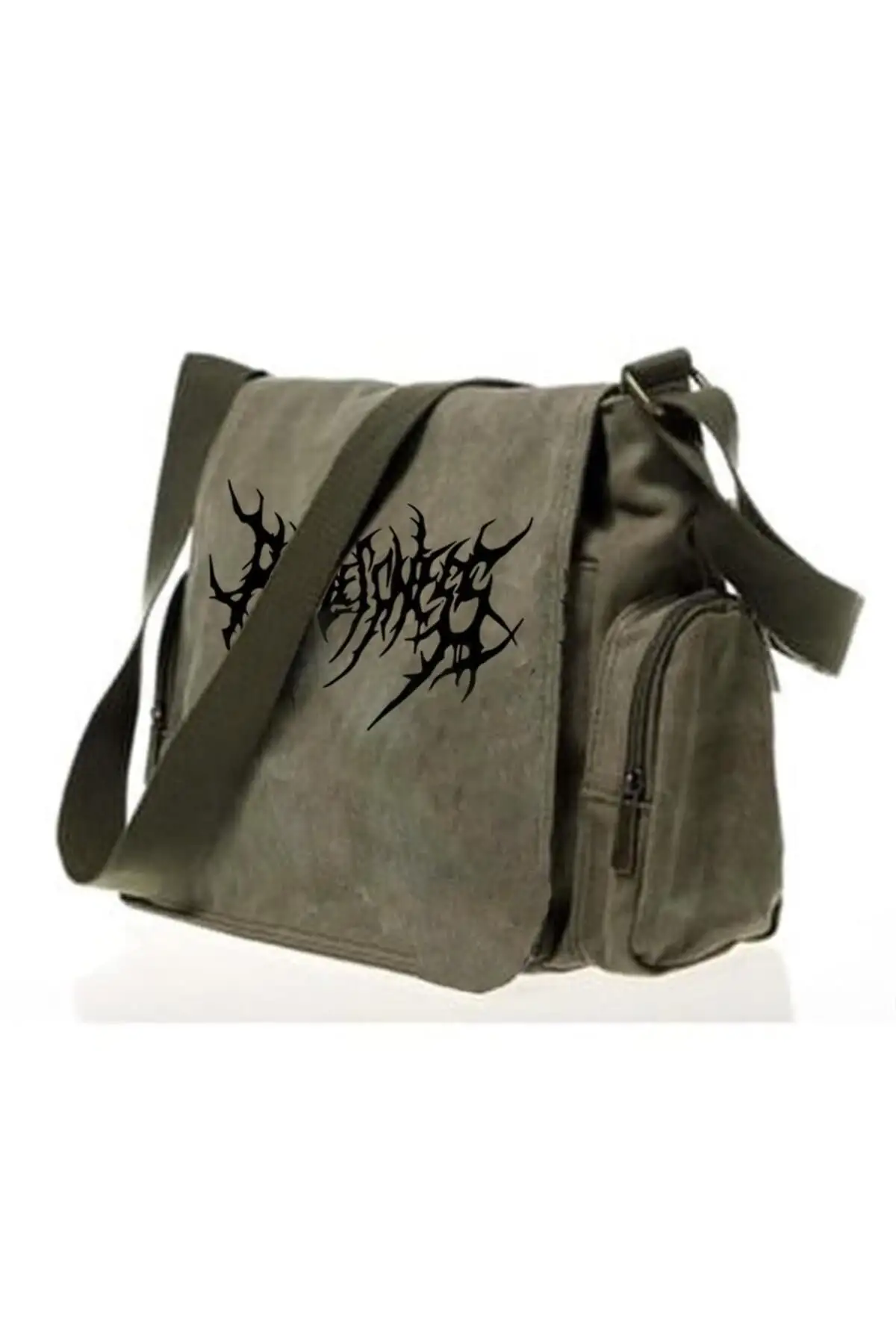 Gothic Punk Baskılı Unisex Yeşil Postacı Çantası