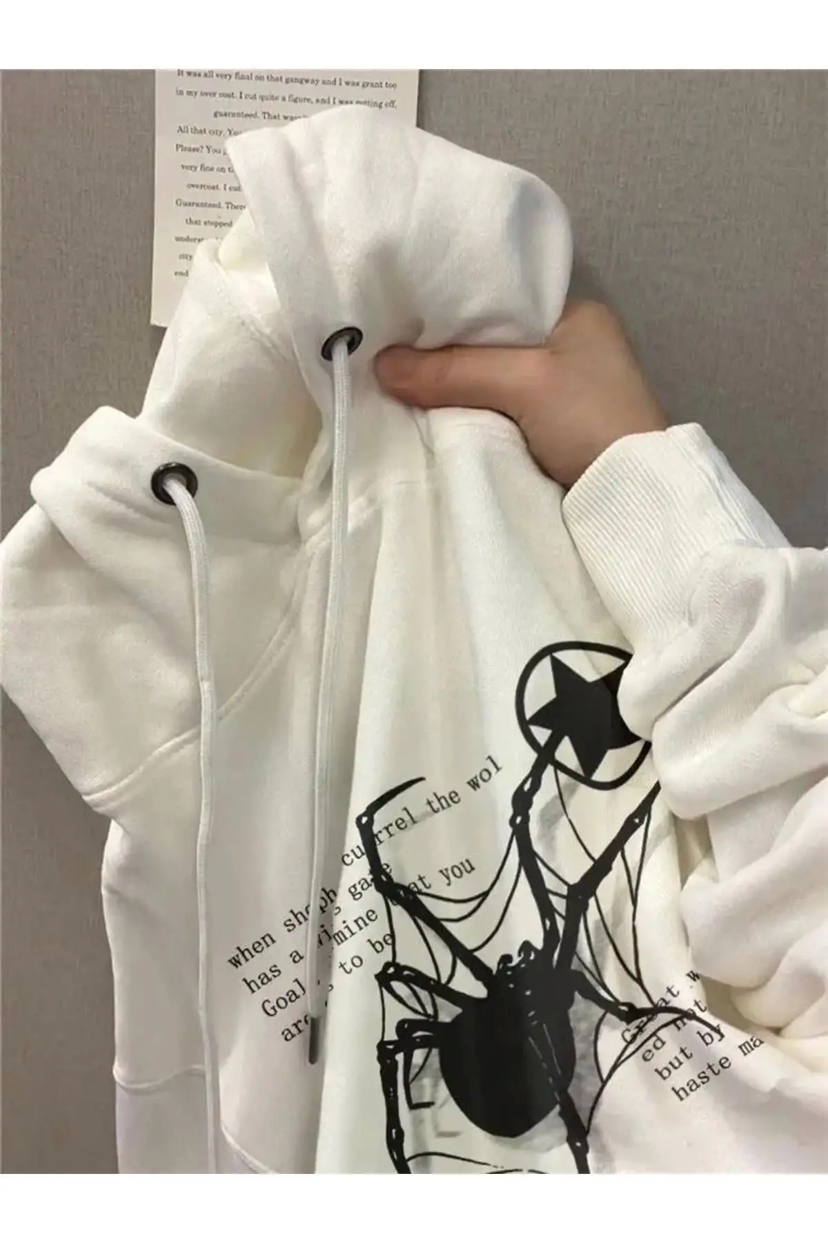 Gothic Spider Web Oversize Unisex Beyaz Kapşonlu Hoodie Sweatshirt