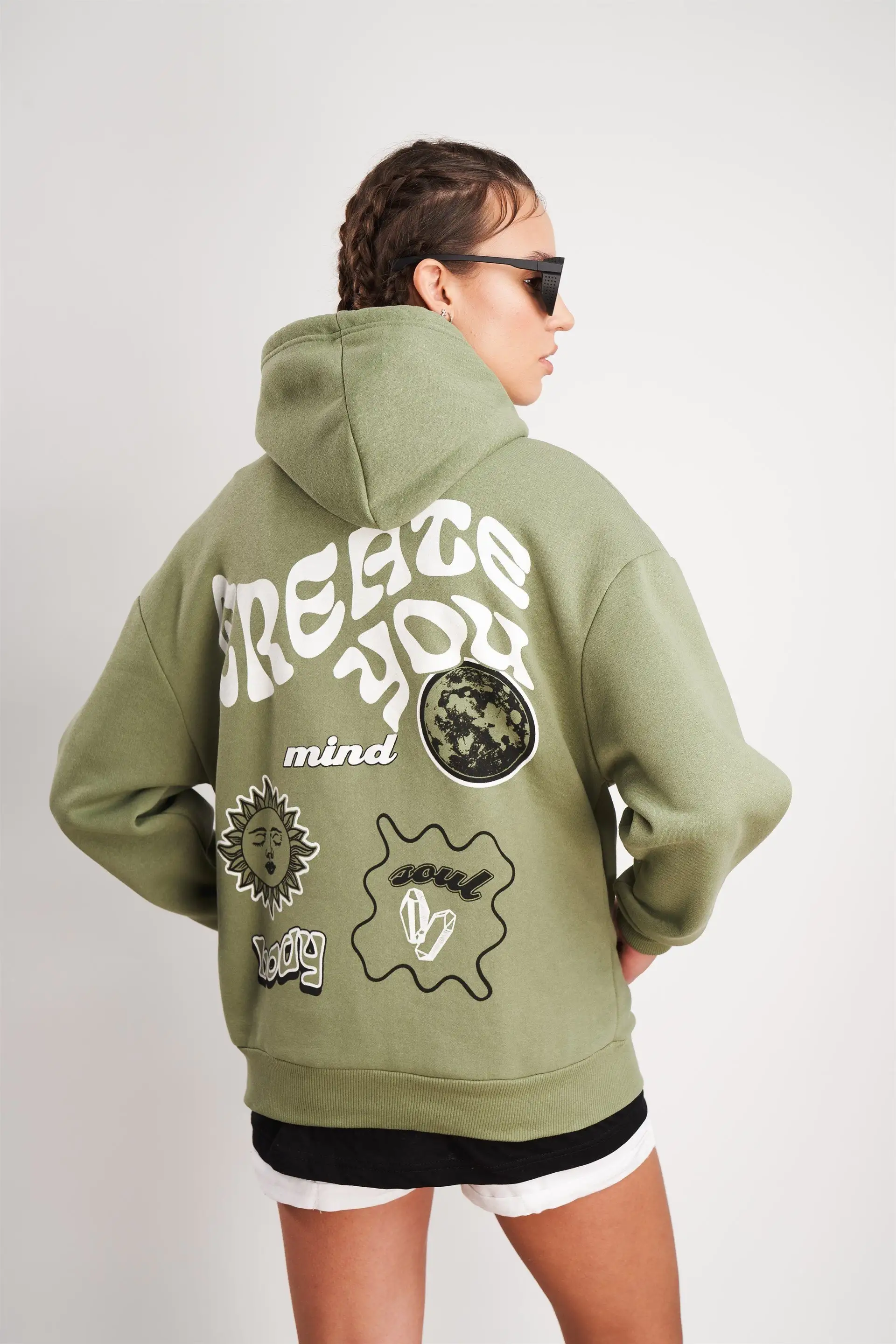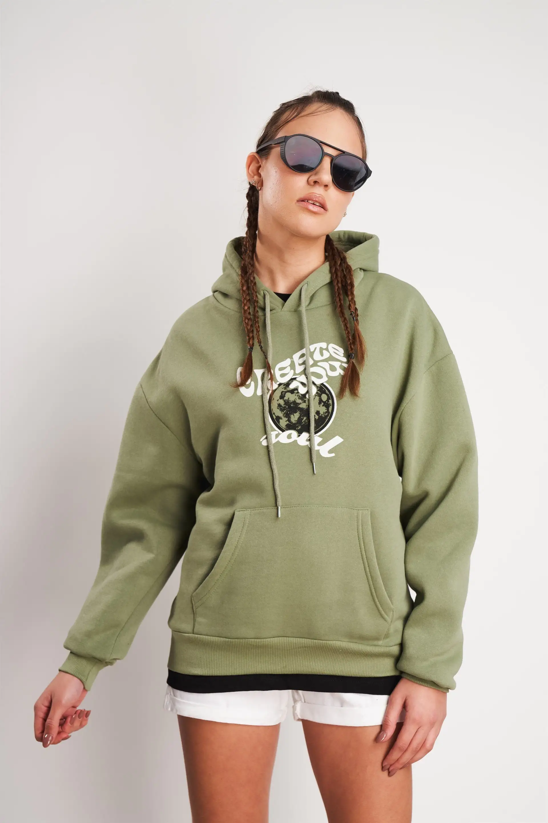 - Kapüşonlu 3 İplik Greate You Baskılı Şardonlu Sweatshirt