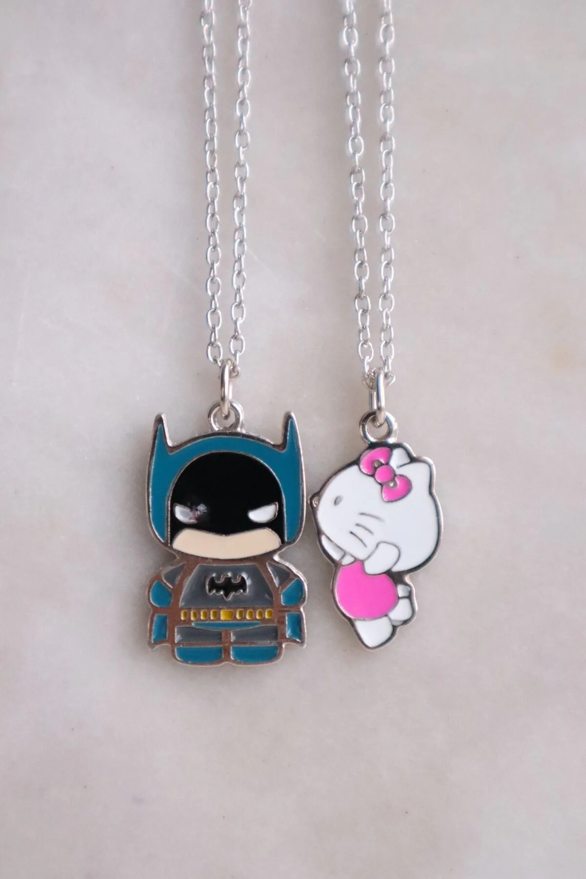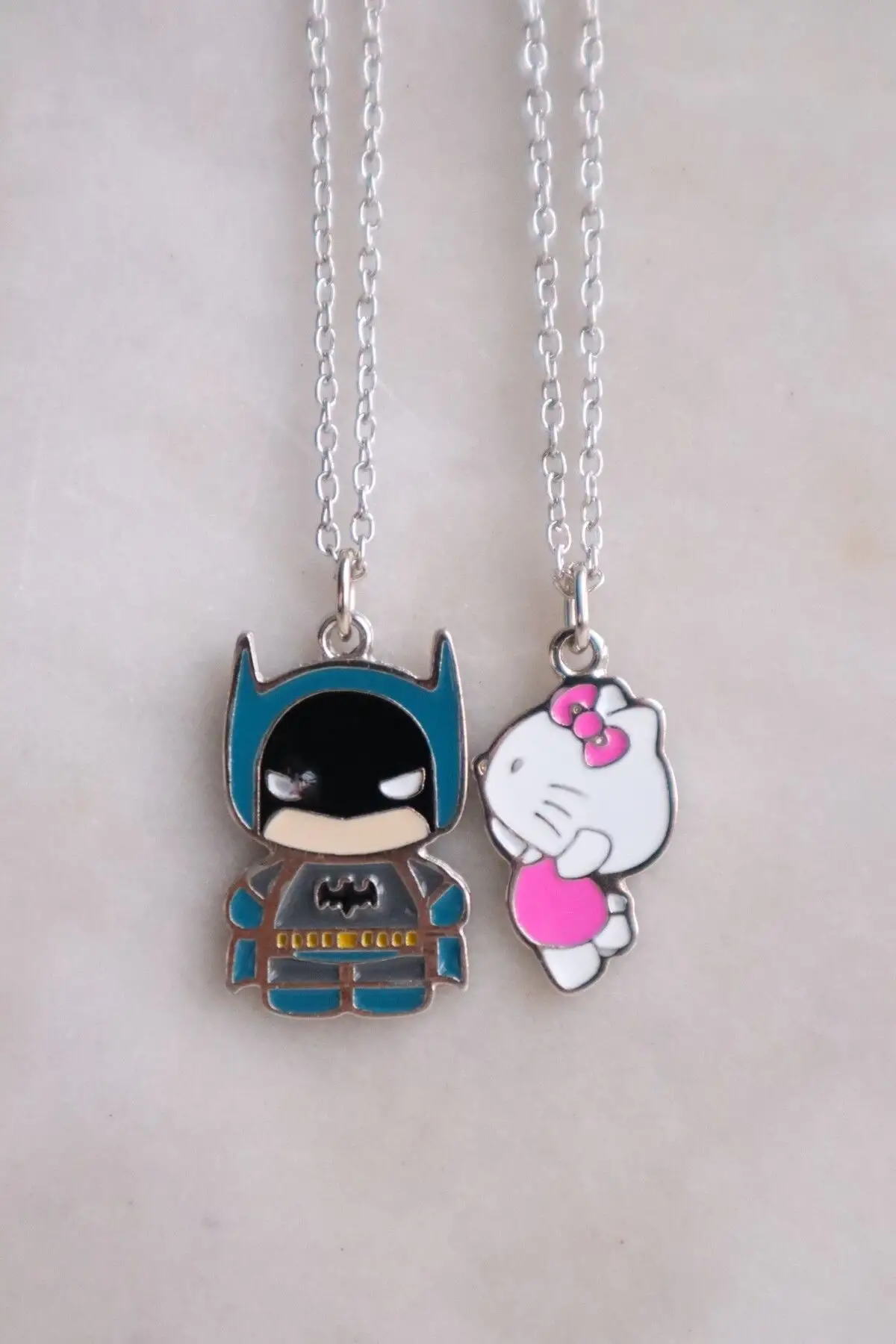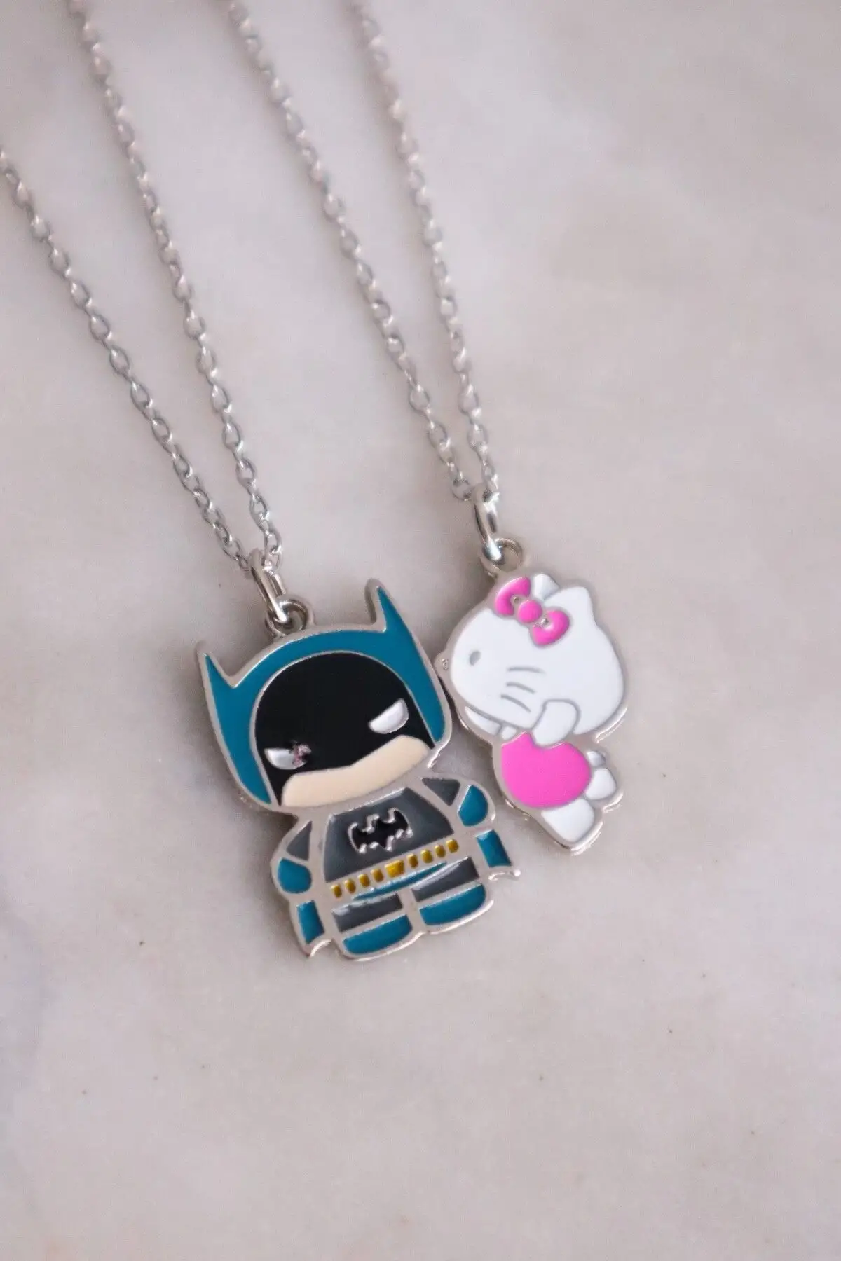 Gümüş Zincirli Kitty & Batman Çift Kolyesi