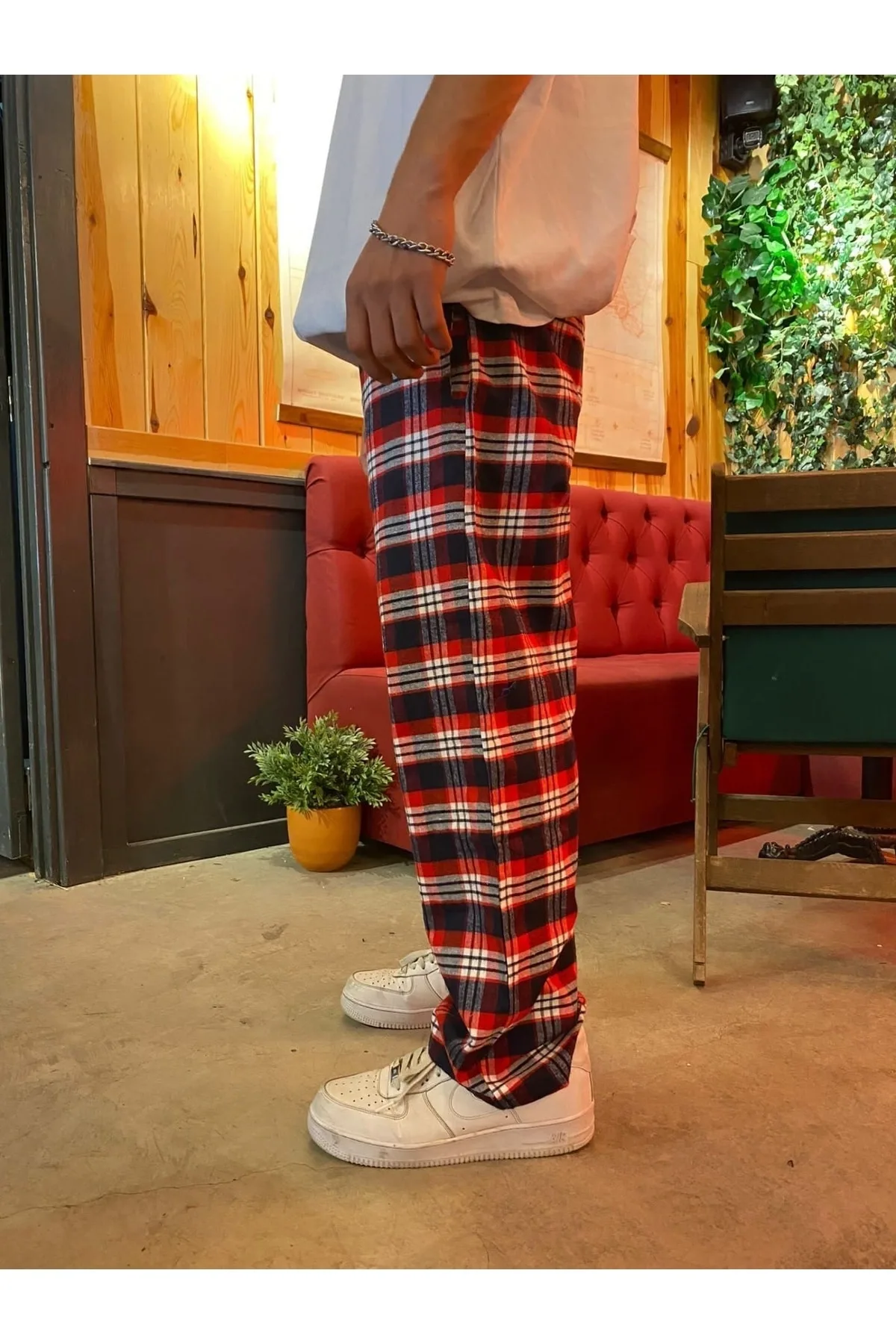 Kırmızı Siyah Kare Desenli Eşofman Altı