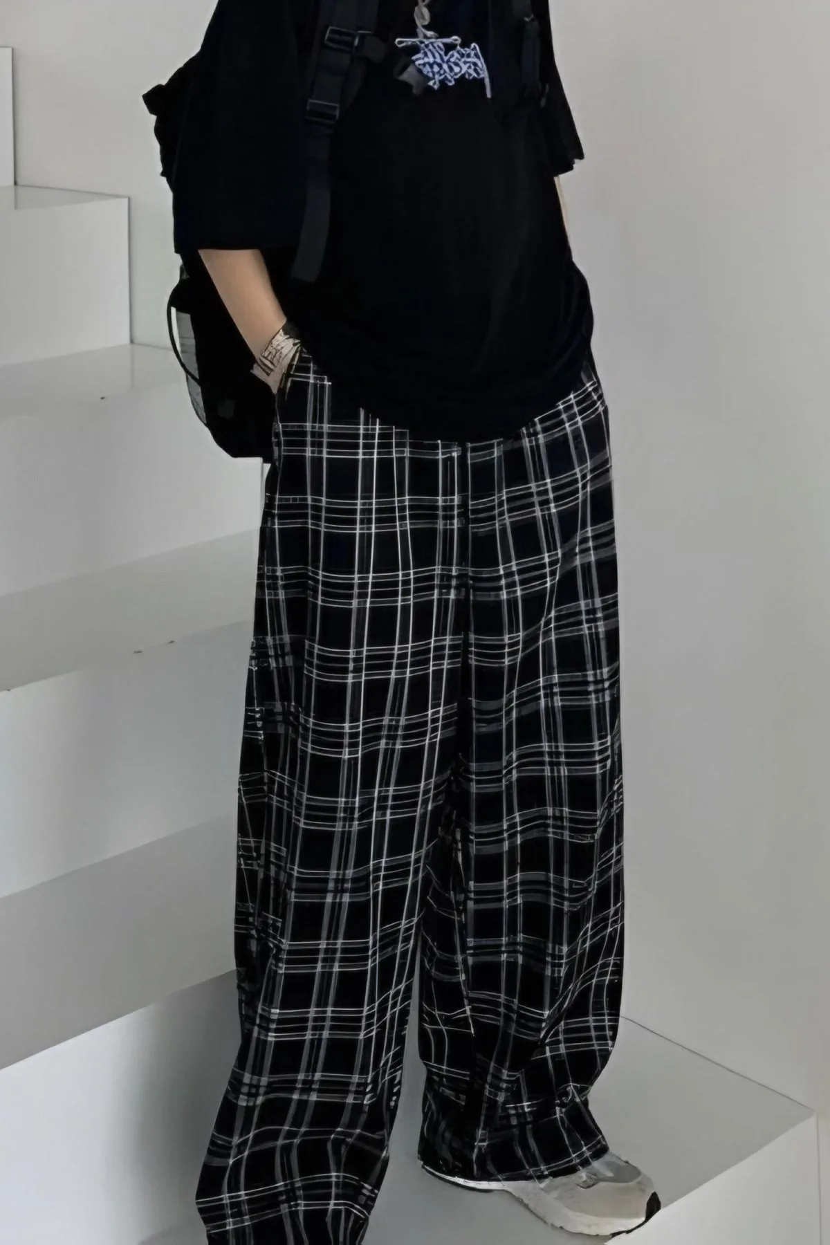 Harajuku Tech Y2K Siyah Gri Ekoseli Eşofman