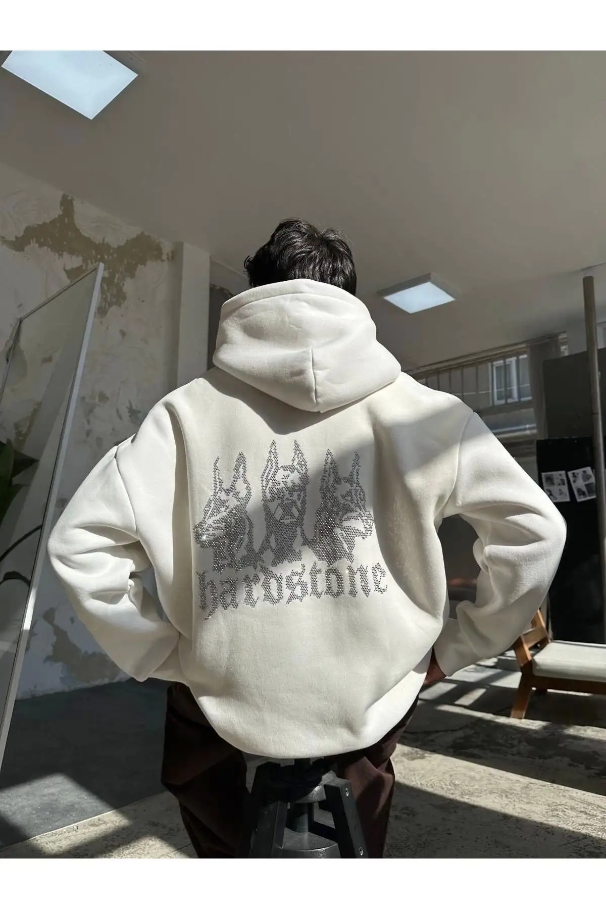 Hardstone Taş Detaylı Hoodie Oversize Sweatshirt