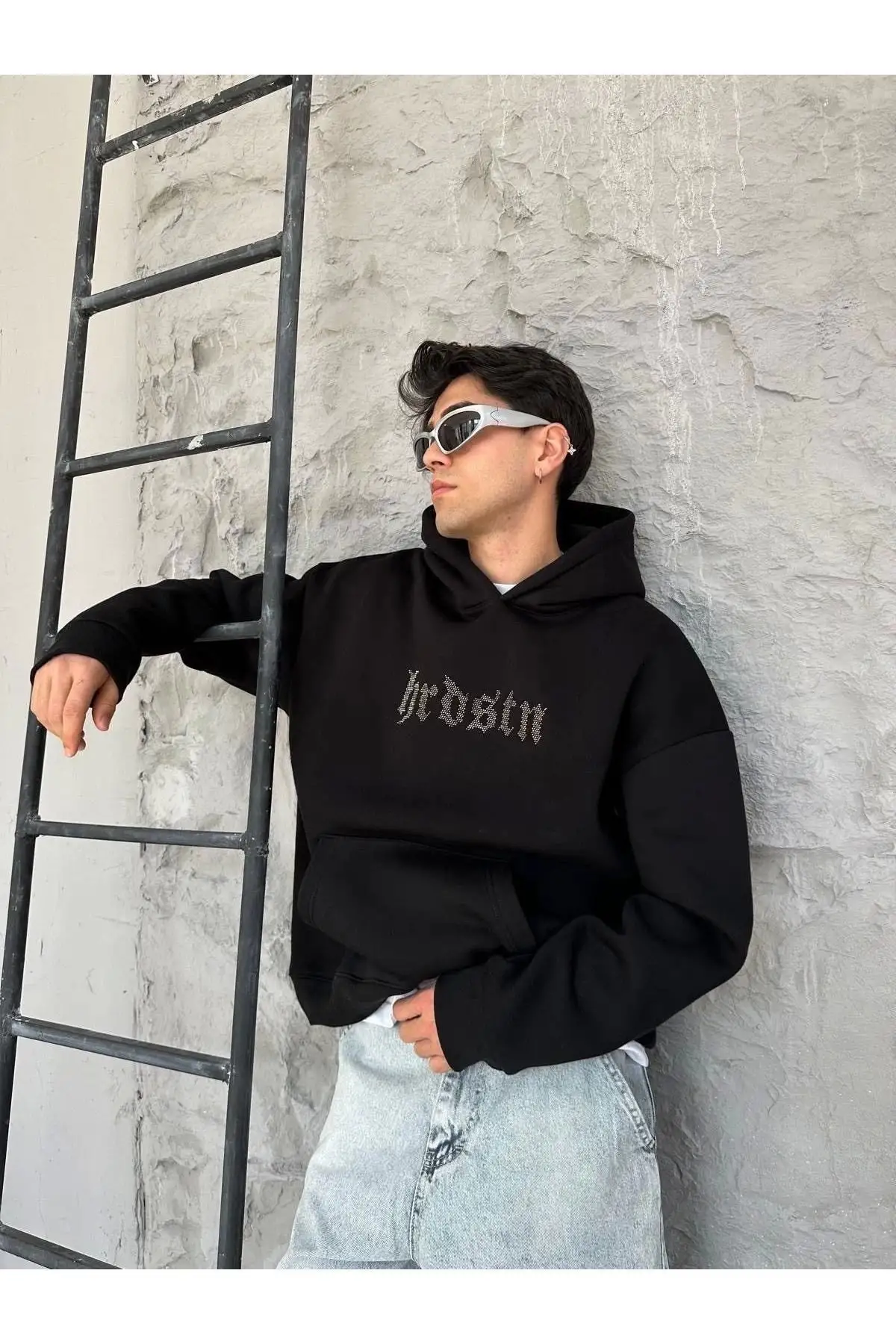 Hardstone Taş Detaylı Hoodie Oversize Sweatshirt