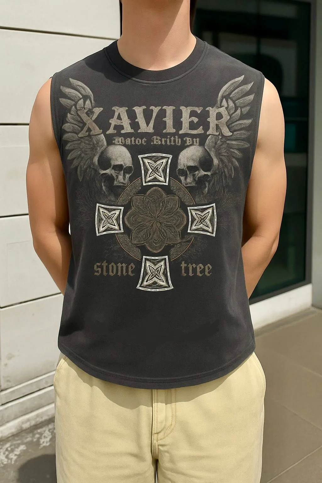 İSKANDİNAV DESEN Atlet Bisiklet Yaka Yıkamalı Vintage Unisex Oversize T-Shirt