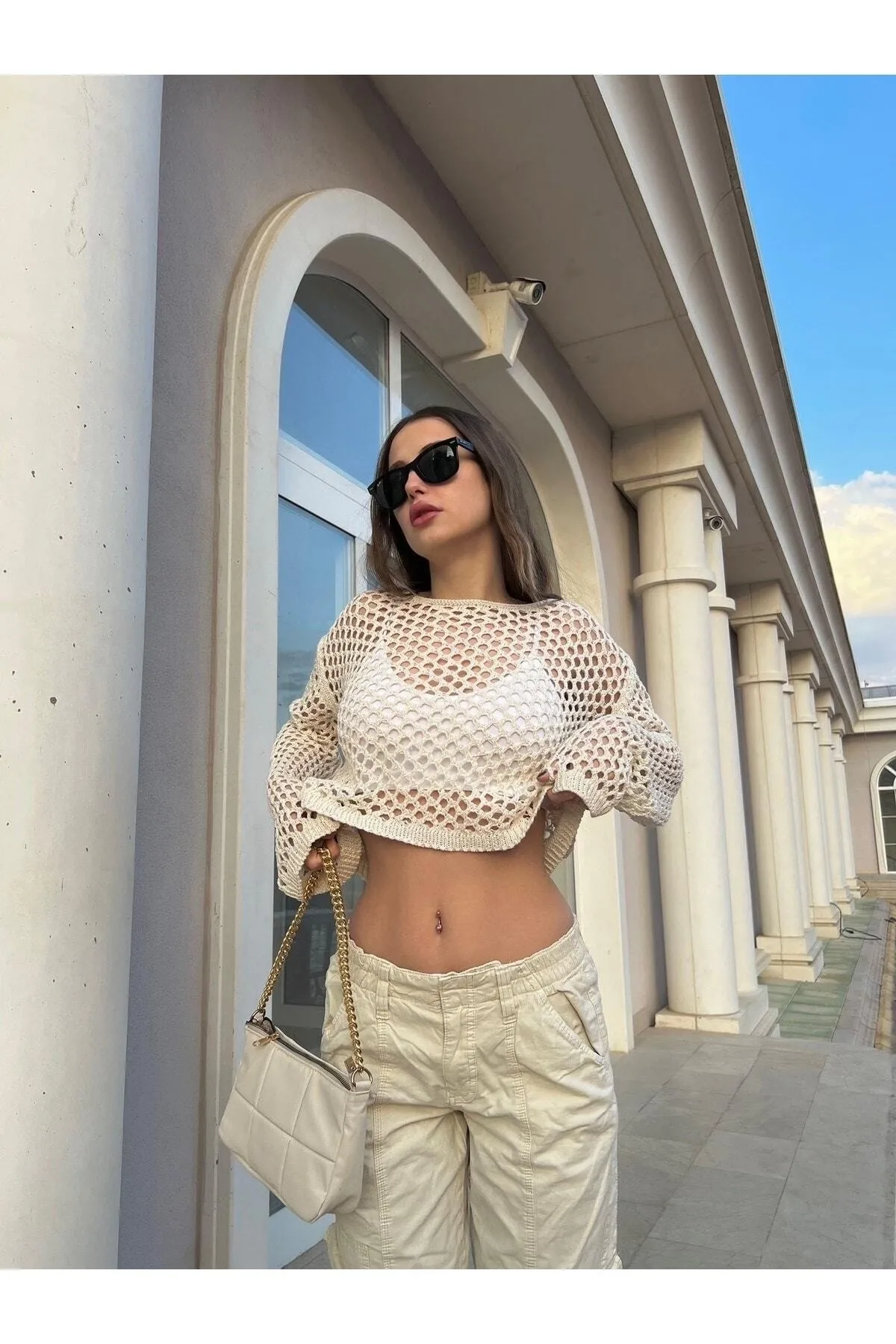 Beyaz Target Highly Lovement Madonna Yaka Ek Askılı Kısa Kollu Full Body Crop