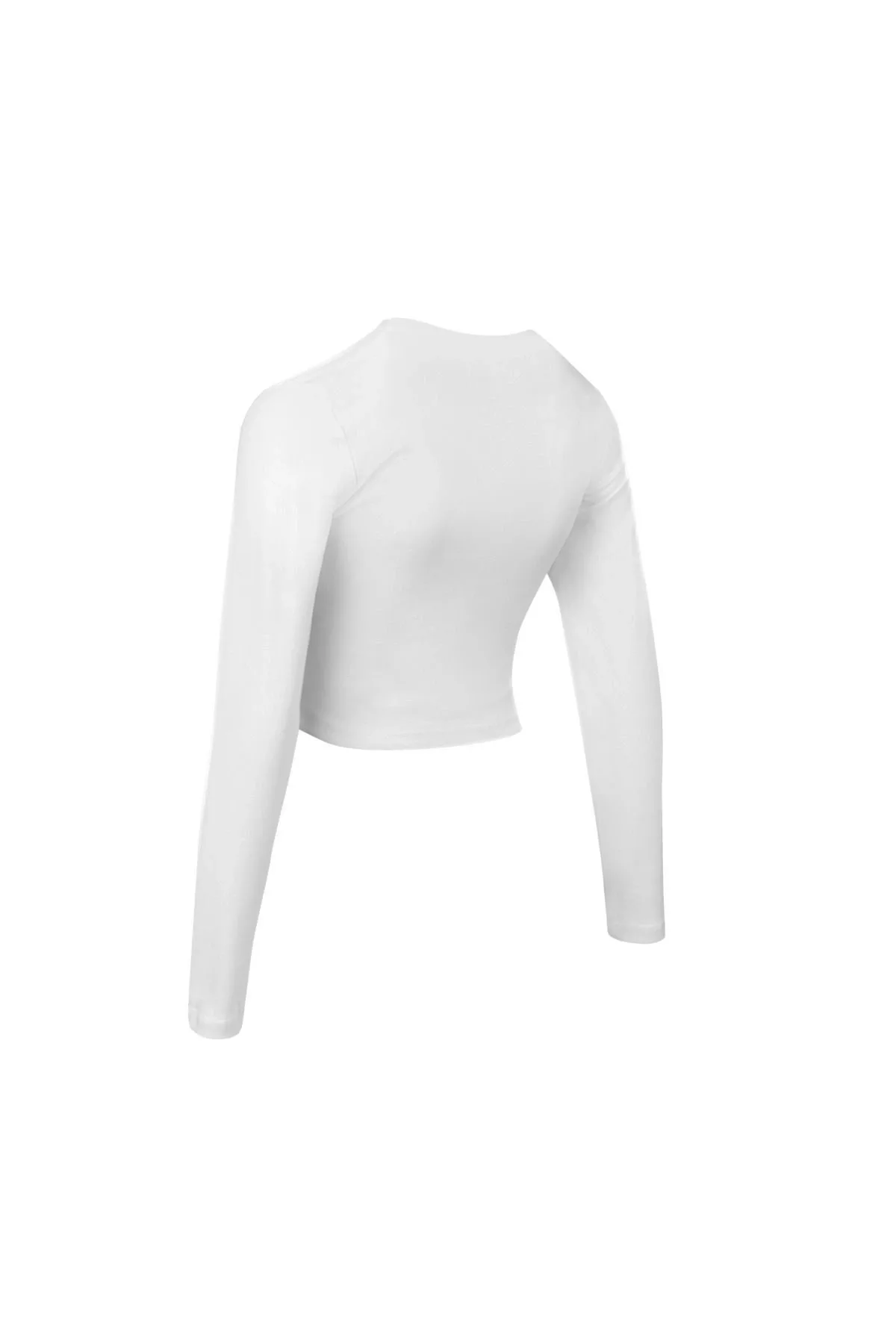 Kadın Bisiklet Yaka Pamuklu Yıldız Desenli Transparan Detaylı Uzun Kollu Beyaz Crop Top Bluz