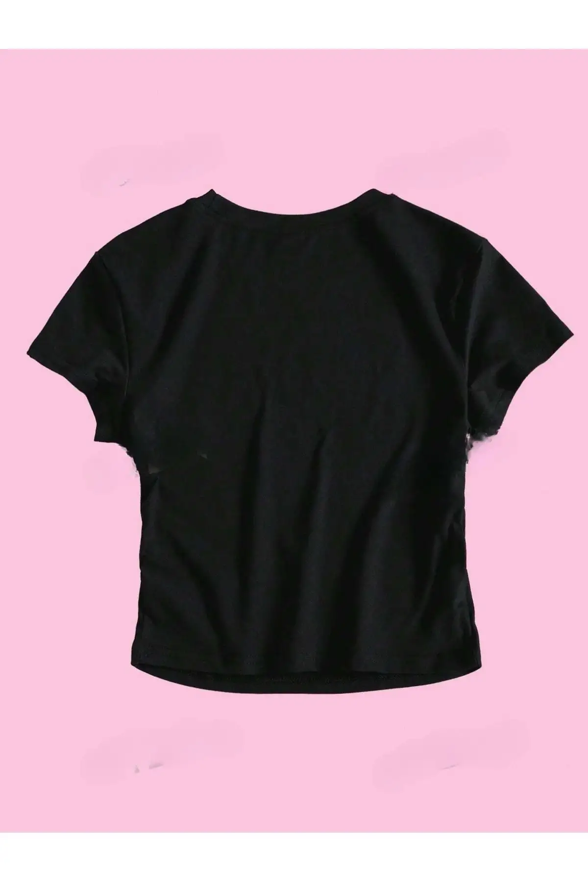Siyah Y2K I Love Berry Baskılı Bayb Tee Crop