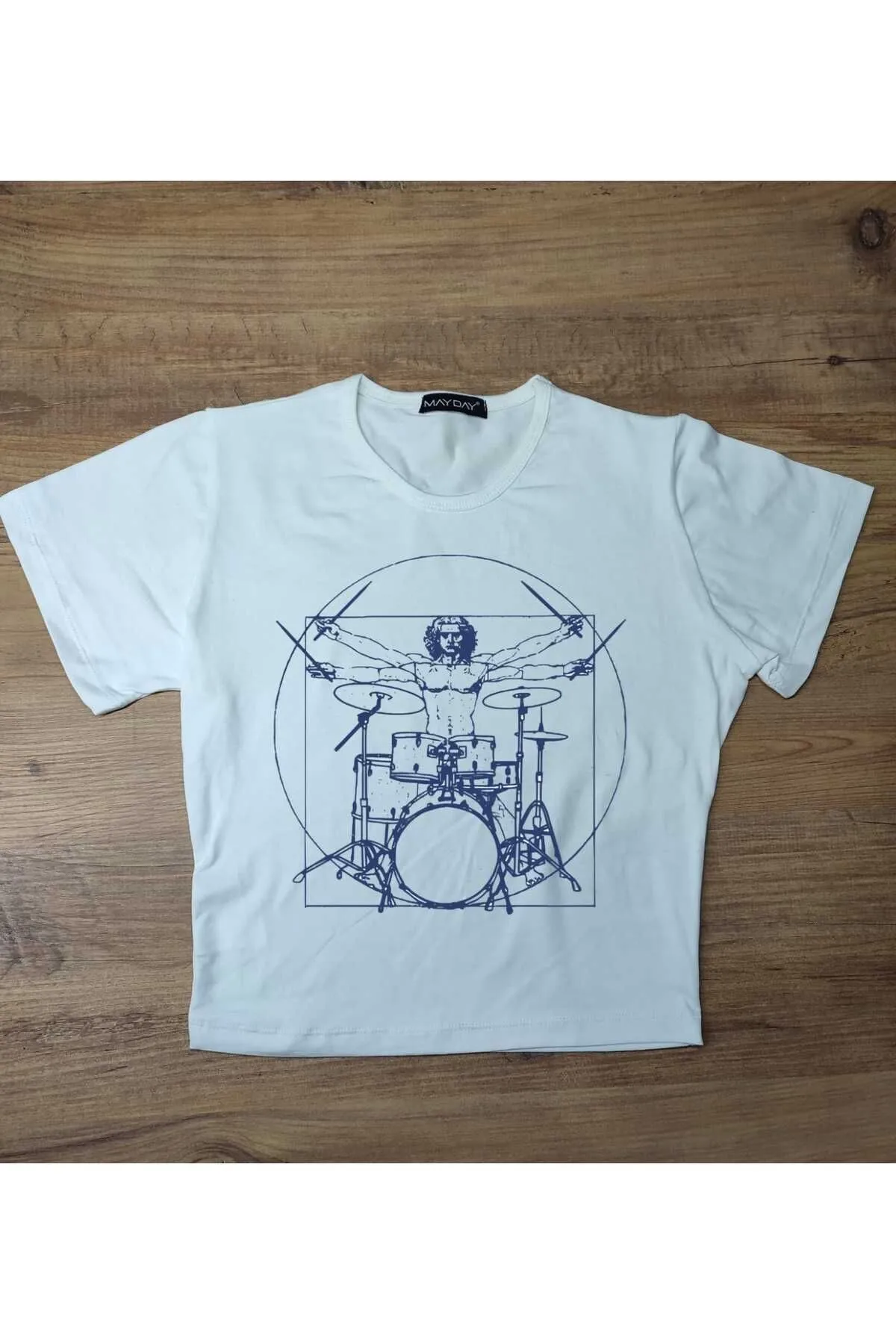 Davul Adam Baskılı Üste Oturan Kalıp Bel Boy Crop