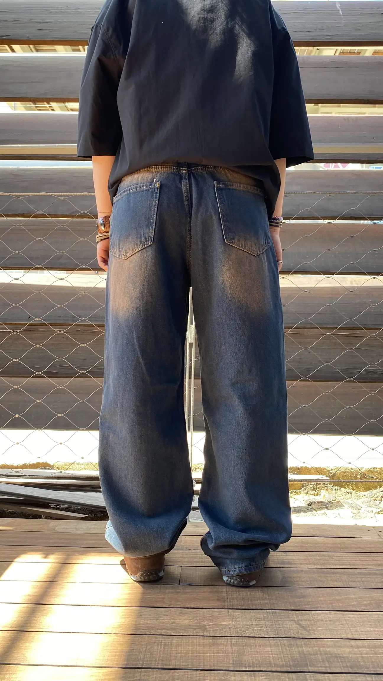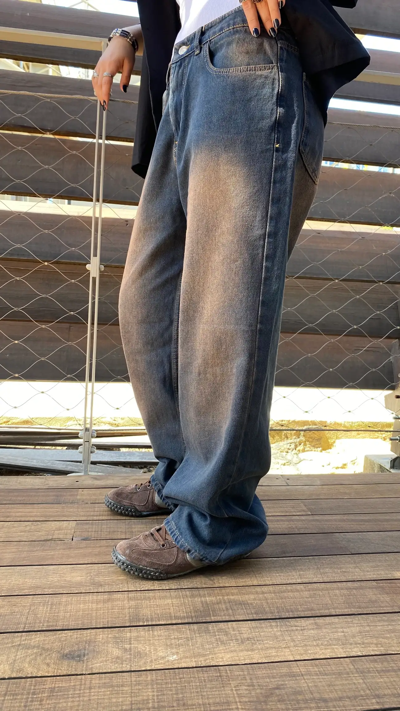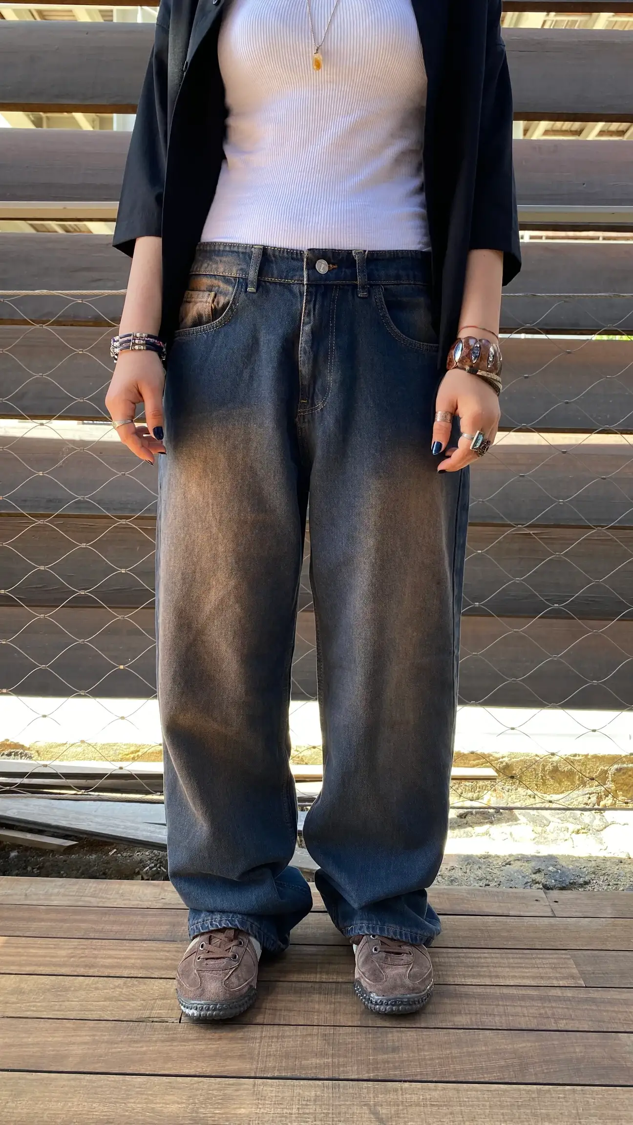 Blue Night Blossom Nakışlı Wide Leg Jean