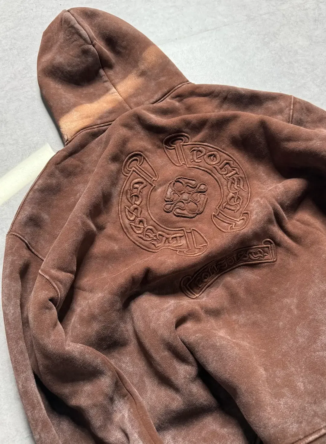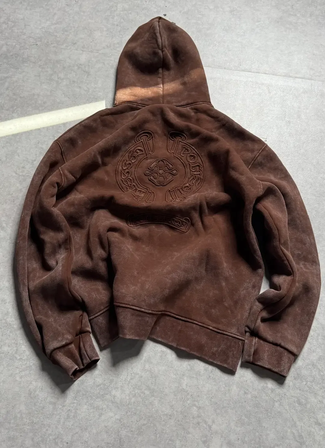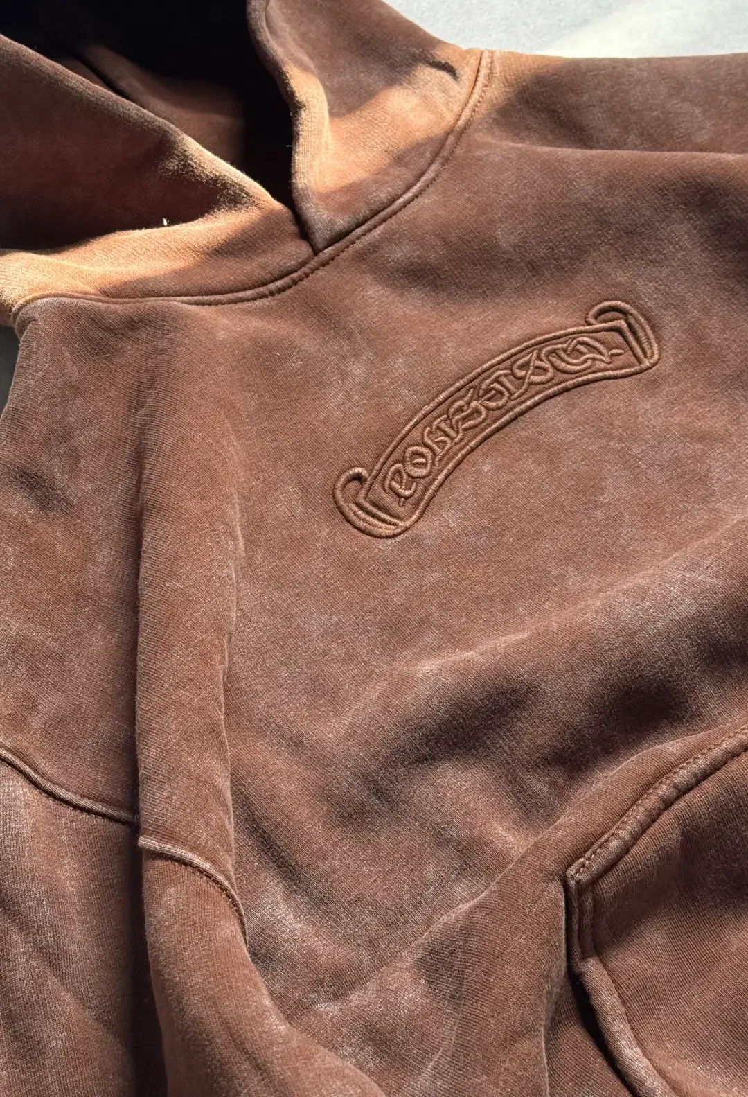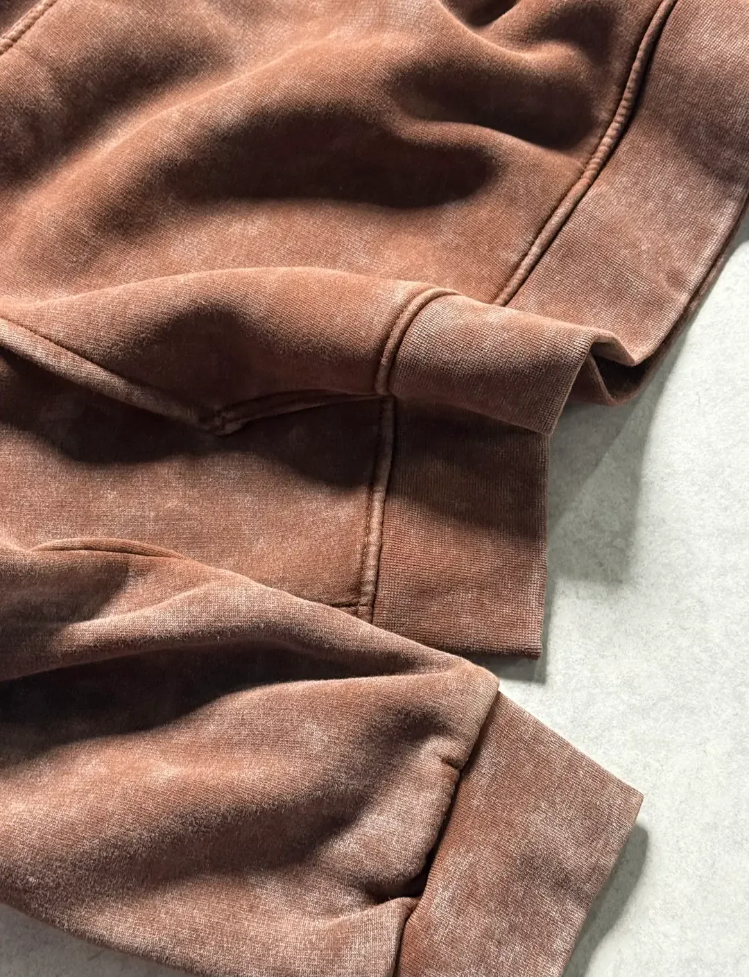Kahverengi Acid Wash Aplike Nakışlı Oversize Premium Sweatshirt