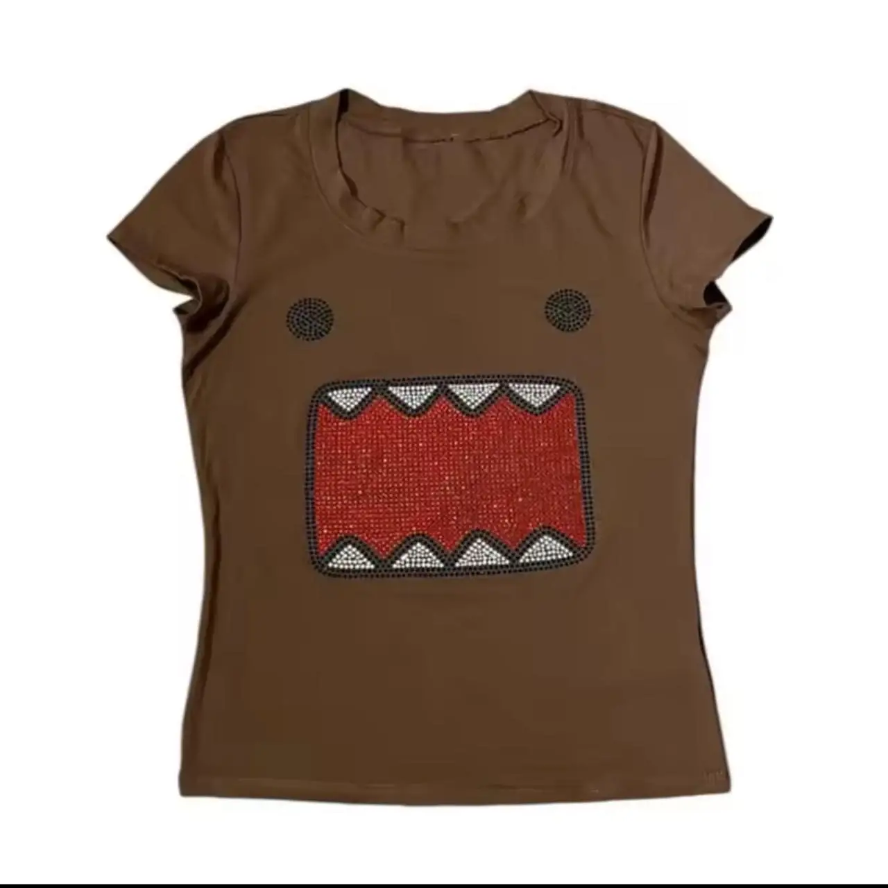 Kahverengi Domo Kun Y2K Kısa Kollu Crop