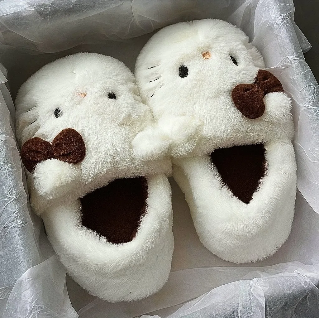Kahverengi Hello Kitty Yumuşak Tüylü Peluş Panduf Terlik