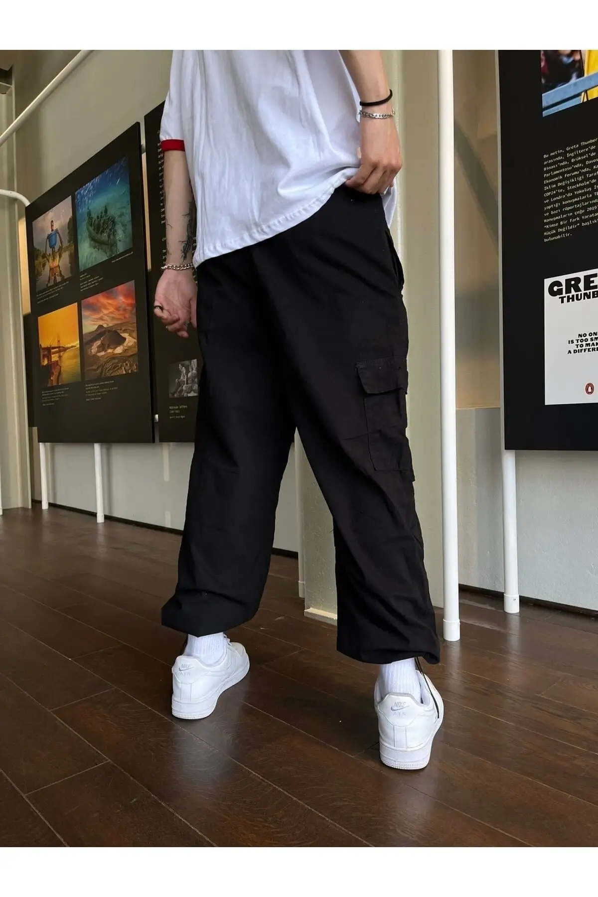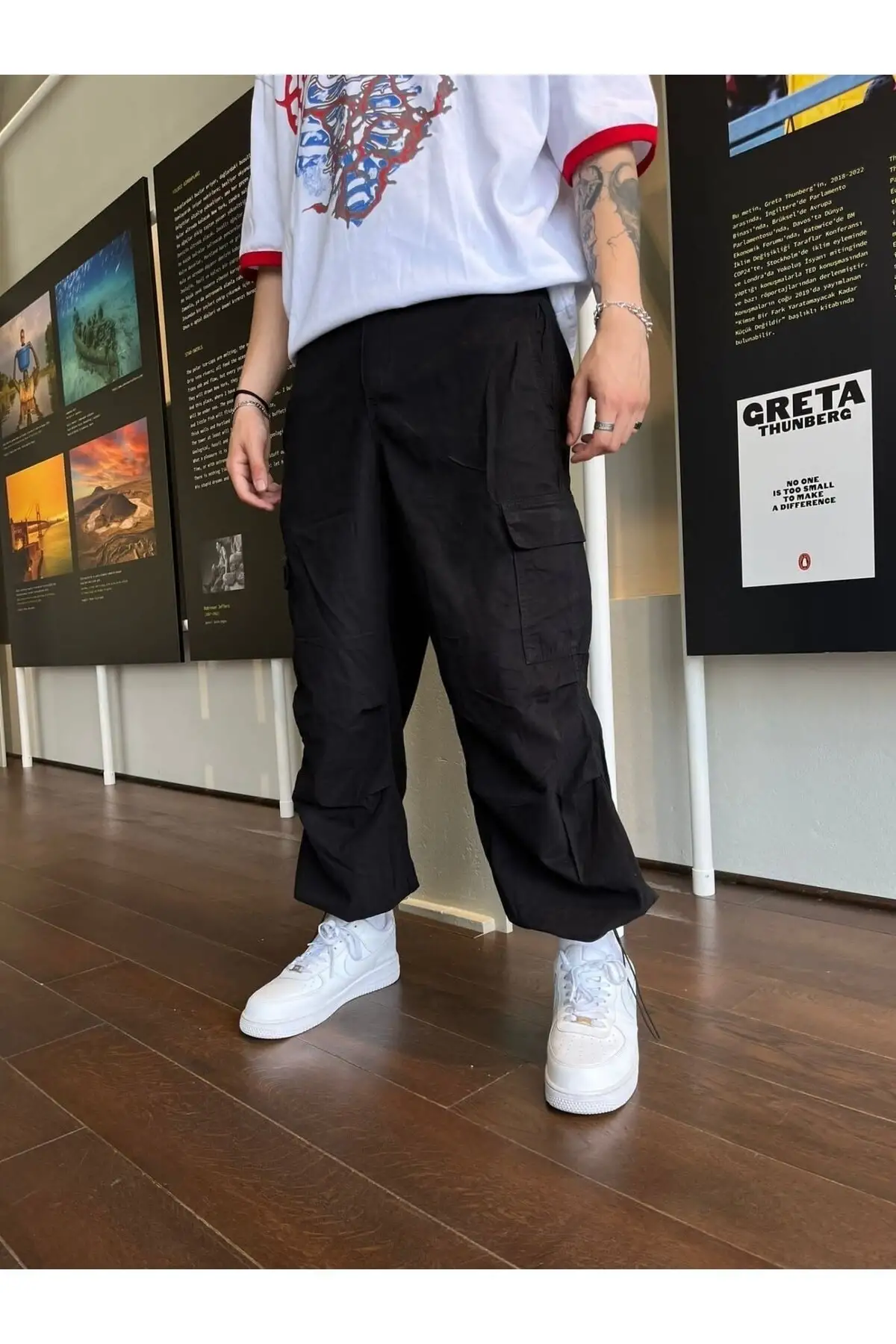 Siyah Yıkamalı Model Wide Leg Baggy Jean